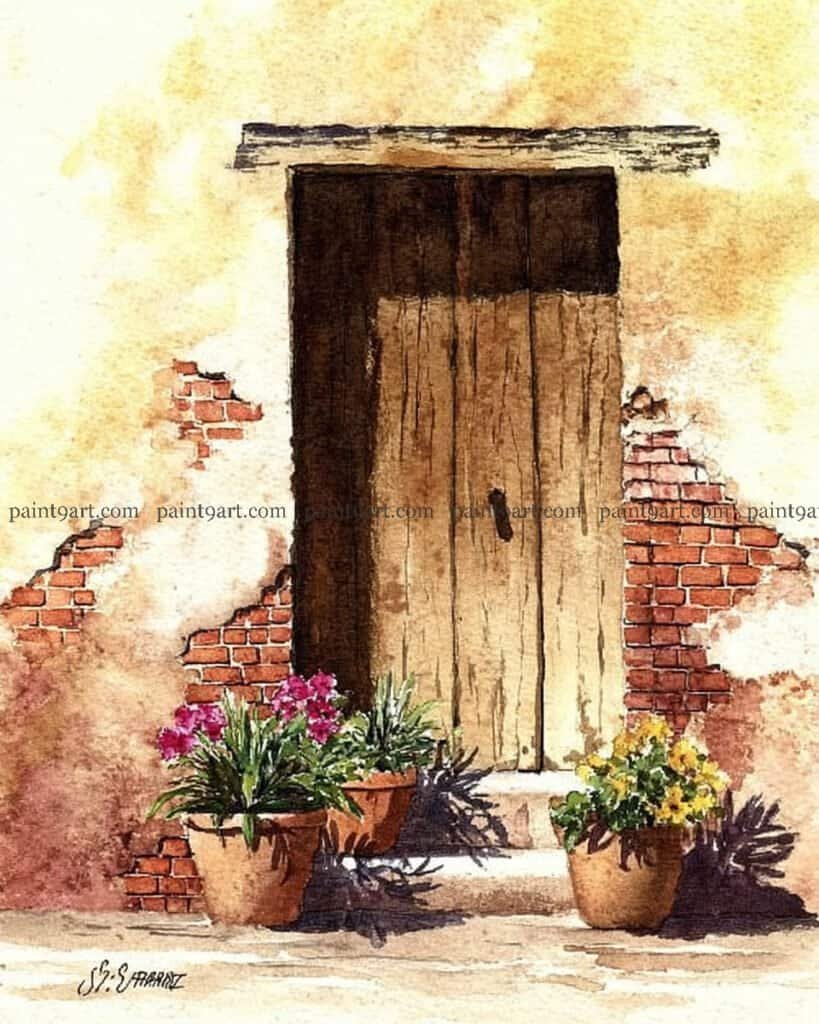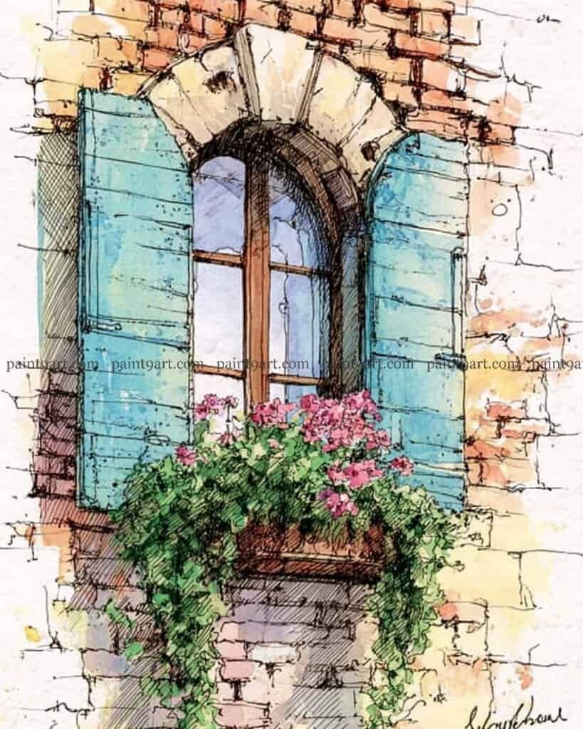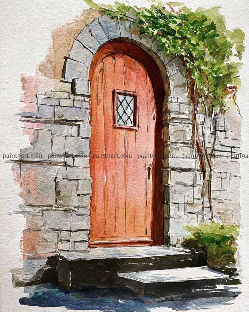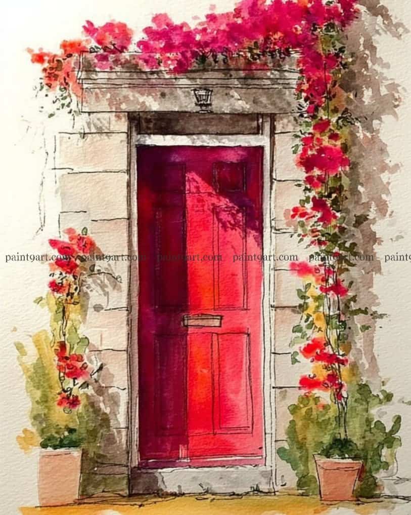36 Door & Window Watercolor Painting Ideas (Coloring Pages Available)