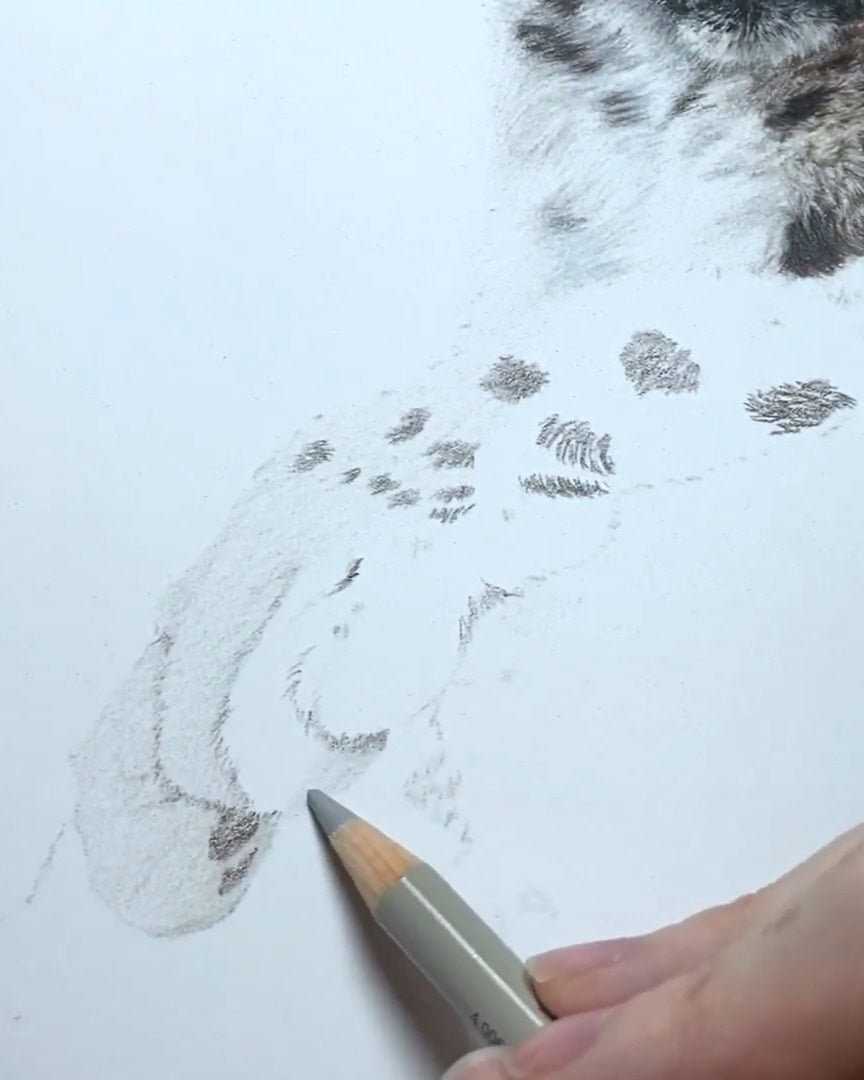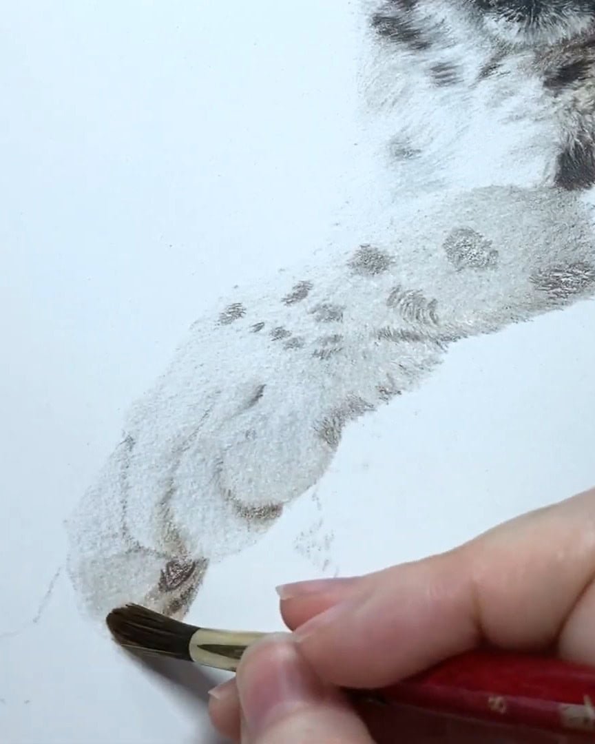 That’s why I always use solvent or odorless mineral spirits when I draw on medium-textured paper. It helps the pencil pigment settle into the paper evenly without pressing hard.