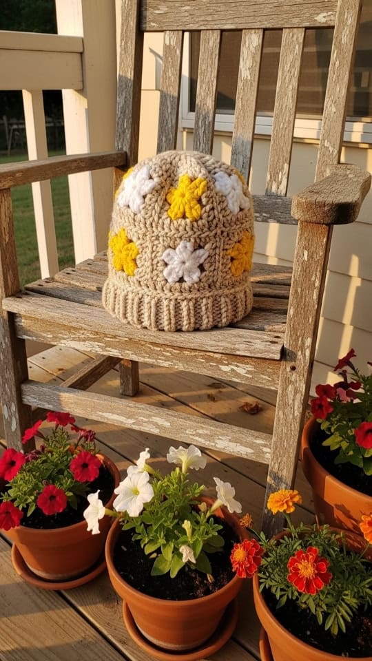 These handmade hats come in five sizes, with free crochet hat patterns available online. I enjoy picking bright yarns for the floral designs to capture nature’s beauty.