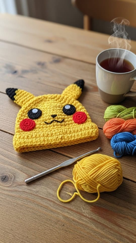 Using a 5.5mm hook and yellow, red, white, and black yarn, I can crochet my own Pikachu hat. It's a fun way to combine fandom with handmade art.
