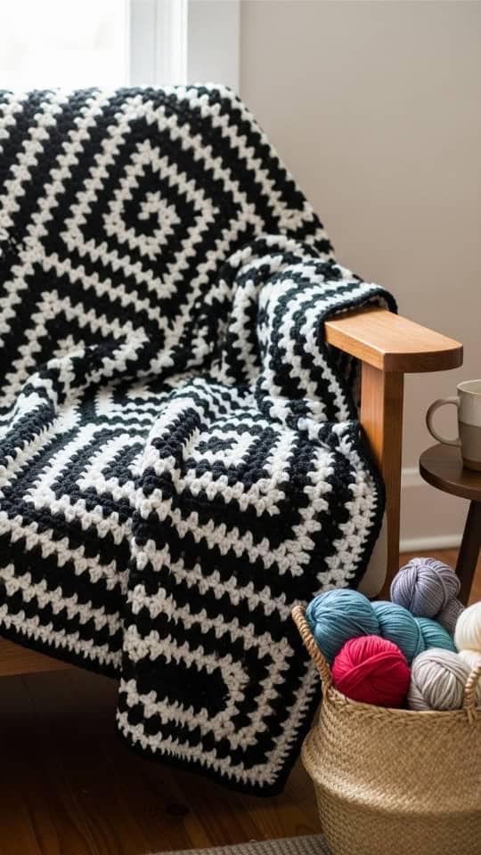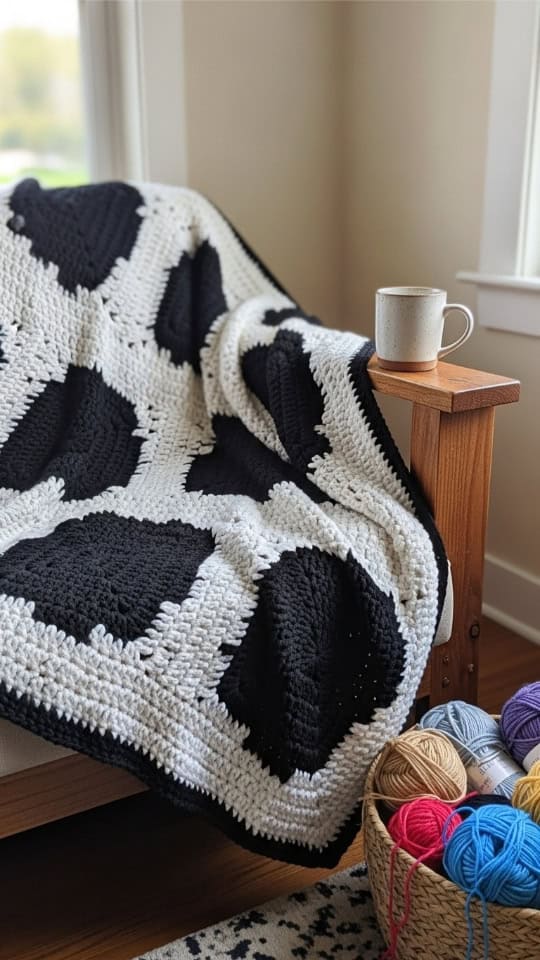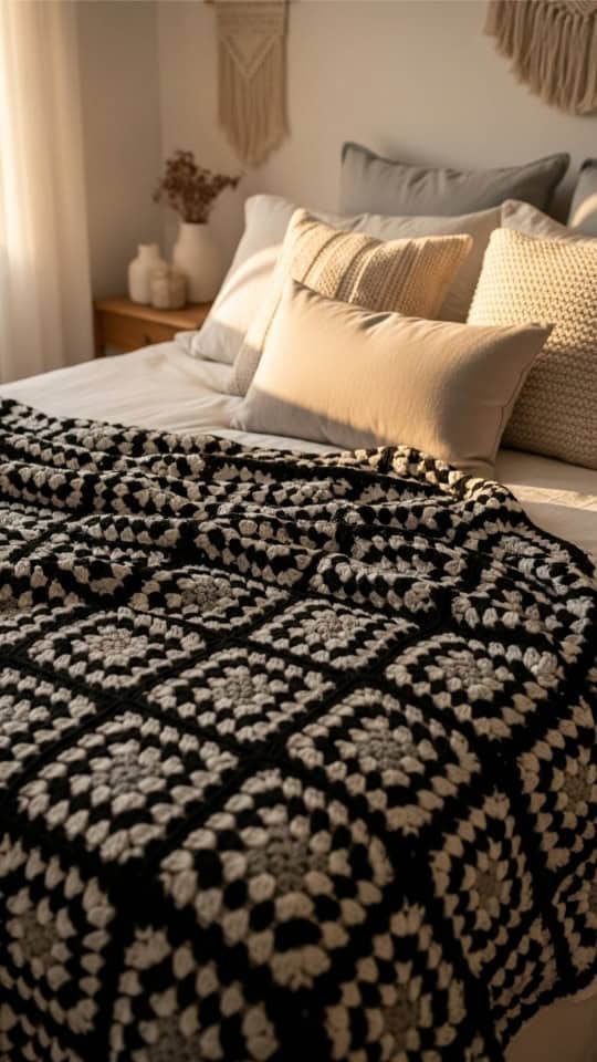 I love how black and white crochet blankets offer such a timeless style. The simple squares create a bold contrast, making any room feel elegant.