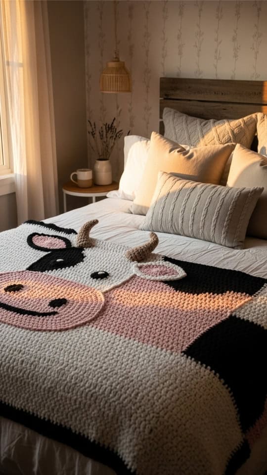 The Crochet Cow Blanket is a fun design. Its cute cow face makes it perfect for farmhouse decor. I saw the pattern posted on Crafty Morning on September 11.
