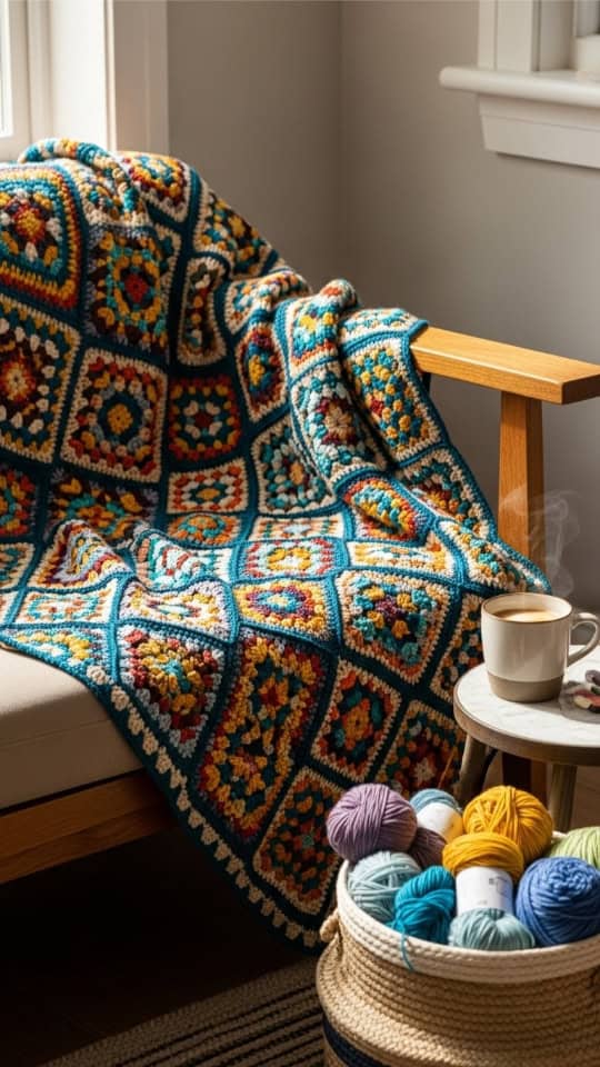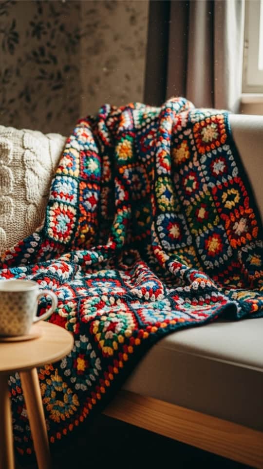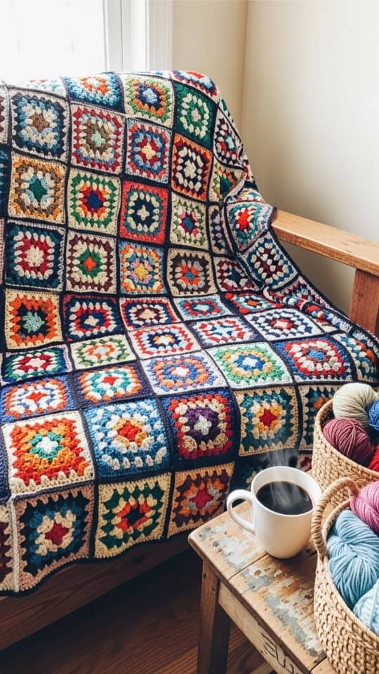 I love how granny square blankets bring color and charm to any room. Each square feels like a tiny project, making it great for beginners.