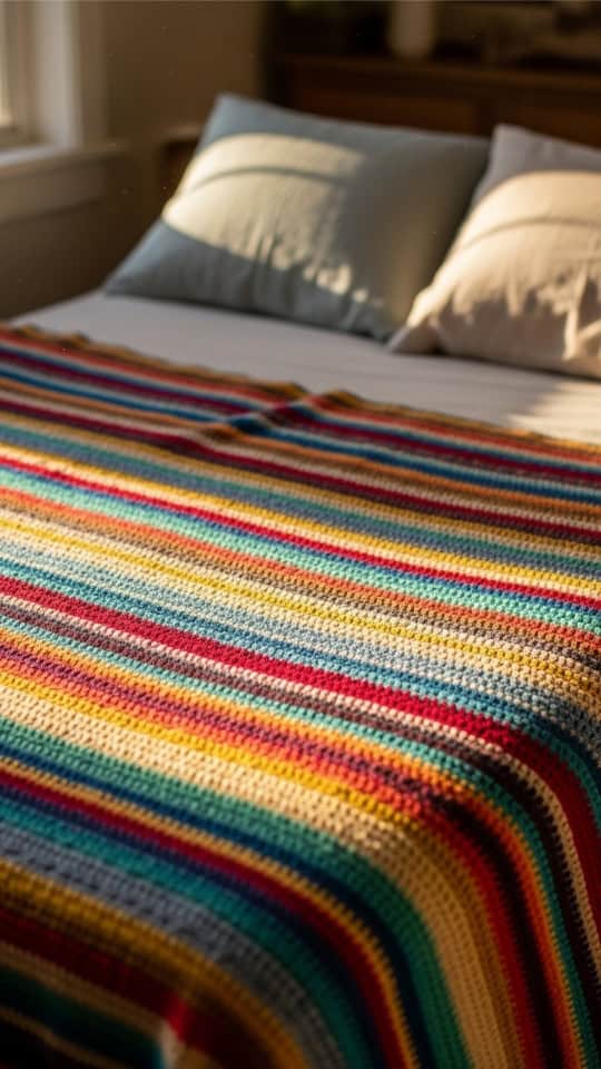 I designed mine to match my daughter’s room. The cheerful rainbow adds life to her space. It’s part of an amazing collection of 25 crochet blanket designs.