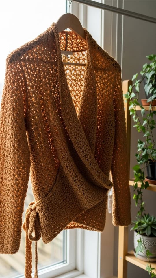 I love how wrap crochet sweaters are both stylish and cozy. This pattern uses simple rectangles, making it perfect for beginners.