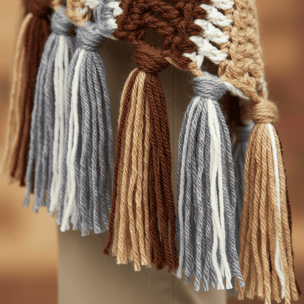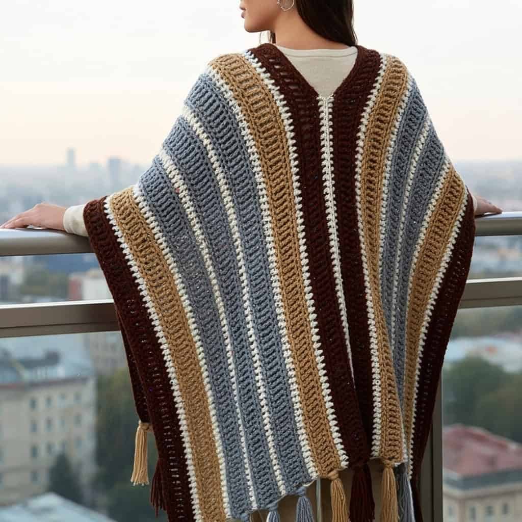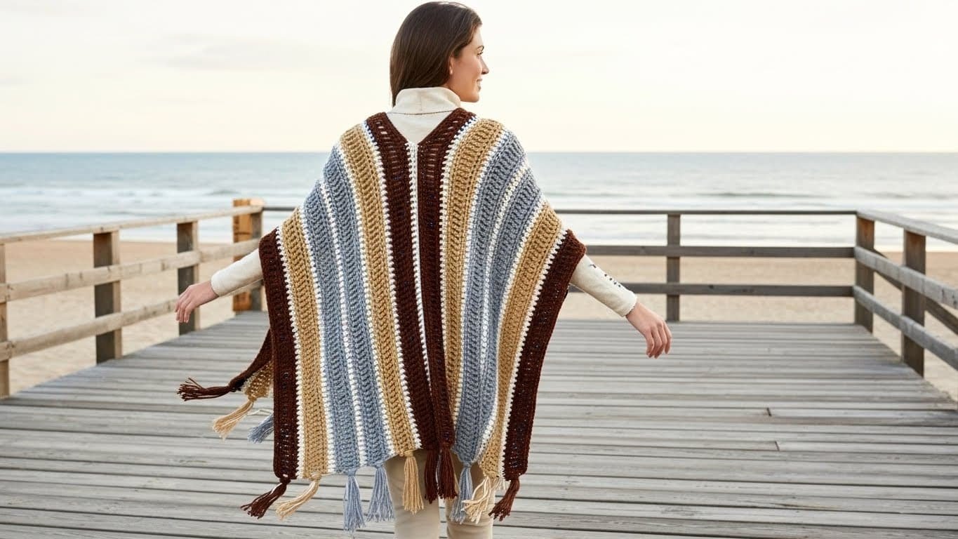 Add effortless style and comfort to your wardrobe with this free crochet tasseled ruana pattern. With bold neutral stripes and flowing tassels, this oversized wrap is perfect for layering—and it’s beginner-friendly, too!