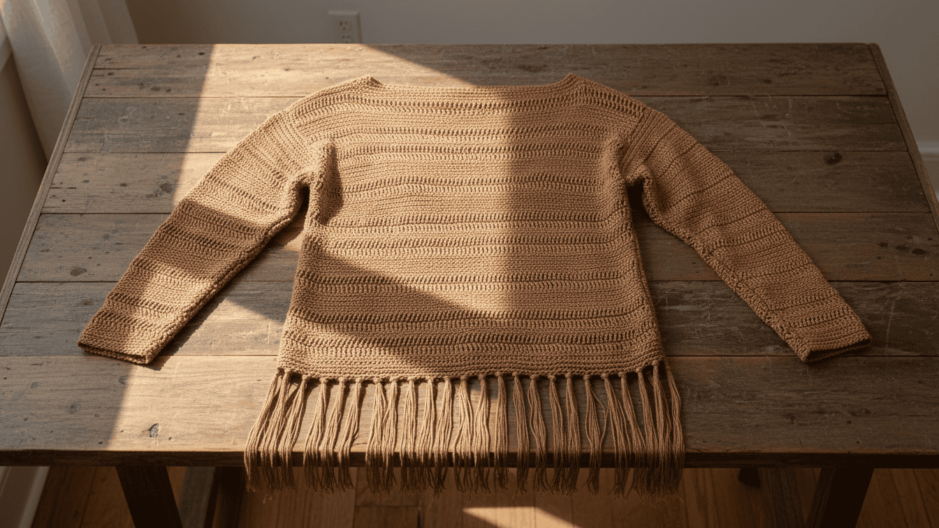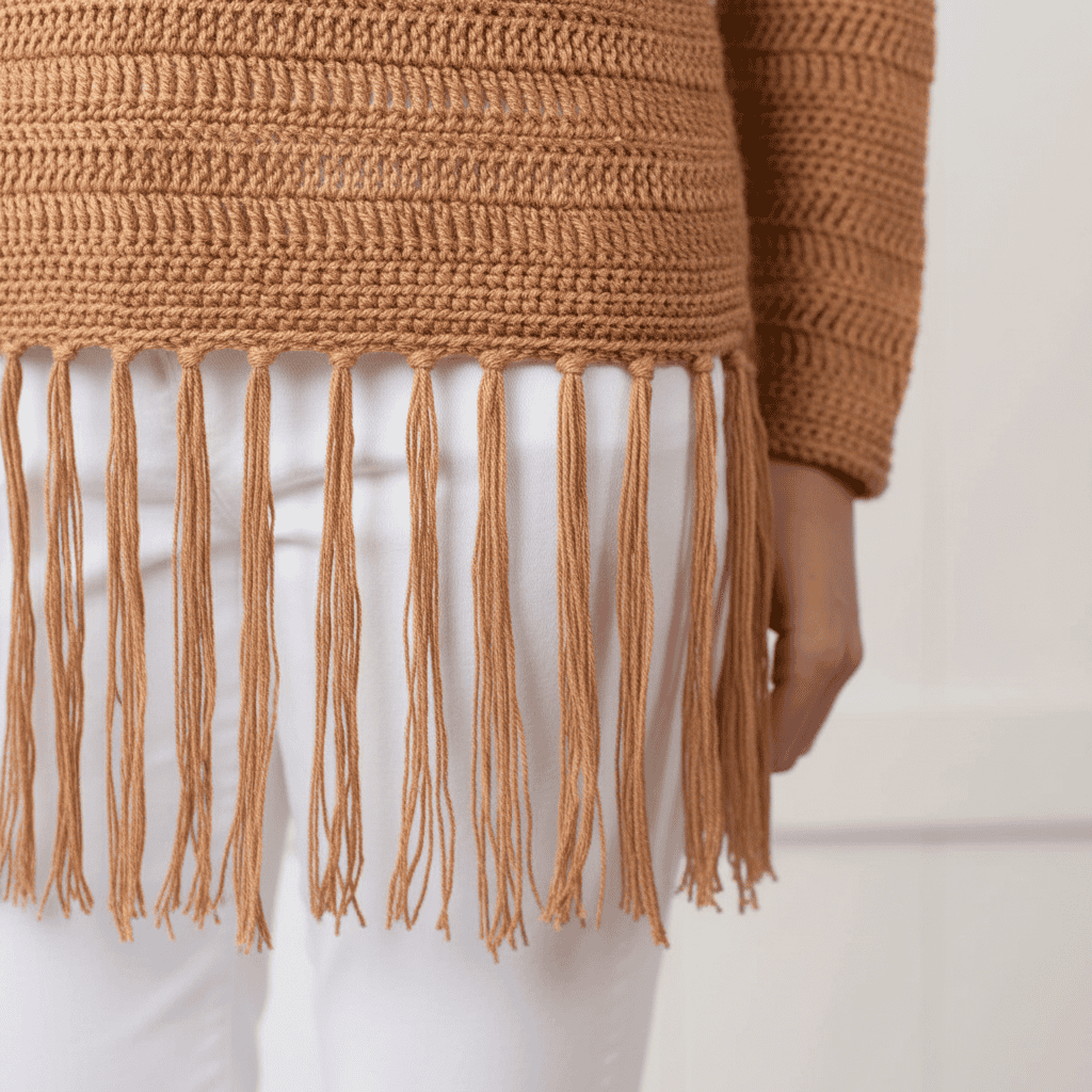 Looking for your next comfy, stylish crochet project? The Delicate Details Crochet Pullover Pattern is the perfect blend of comfort and flair—with its airy stitchwork and fringe detail, it’s ideal for spring and summer layering.