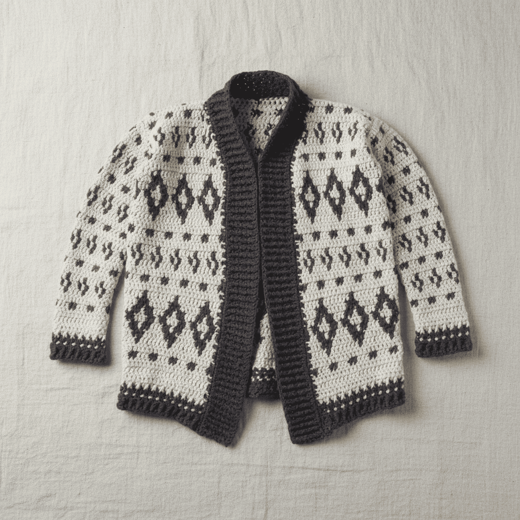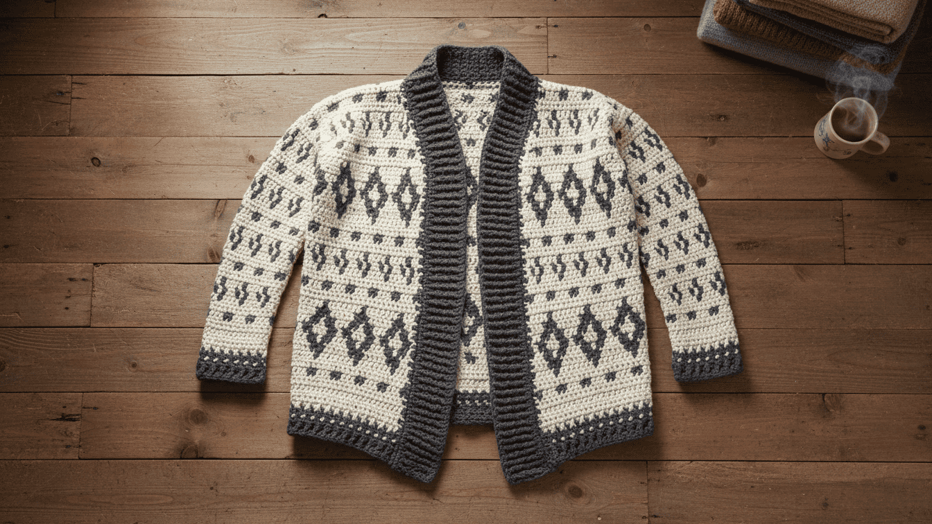 Looking for something bold, warm, and stylish to add to your handmade wardrobe? This Free Nordic Breeze Crochet Cardigan Pattern delivers striking Nordic-inspired colorwork, bulky yarn warmth, and a tailored silhouette — all made in simple stitches.