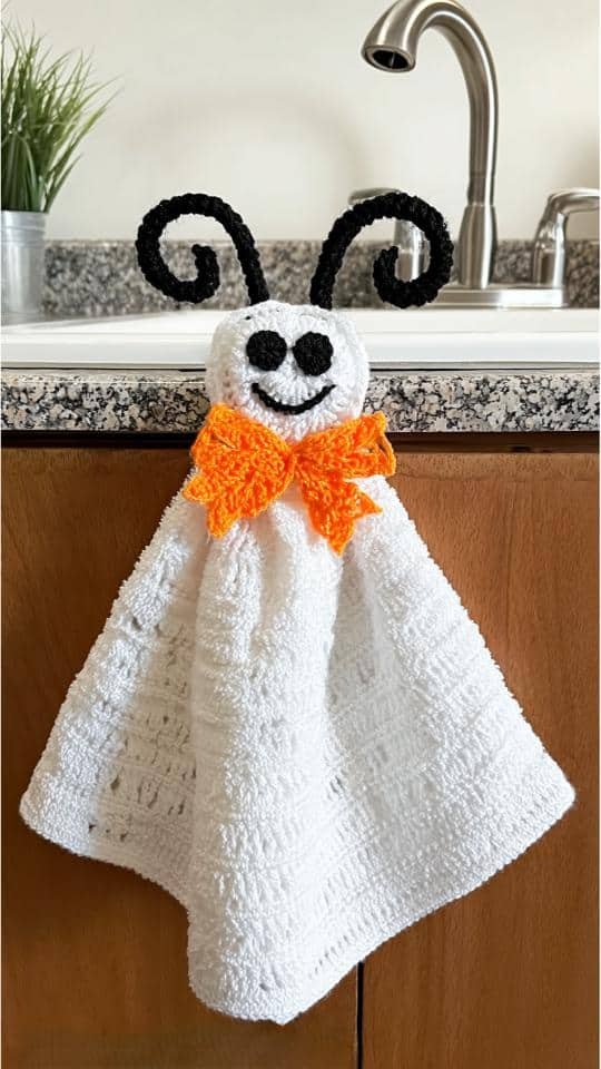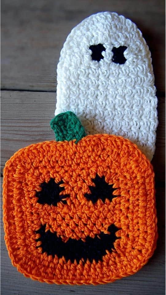 These fun crochet dishcloths bring a festive feel to my kitchen right away. A happy pumpkin and a silly ghost always make me smile while I clean.