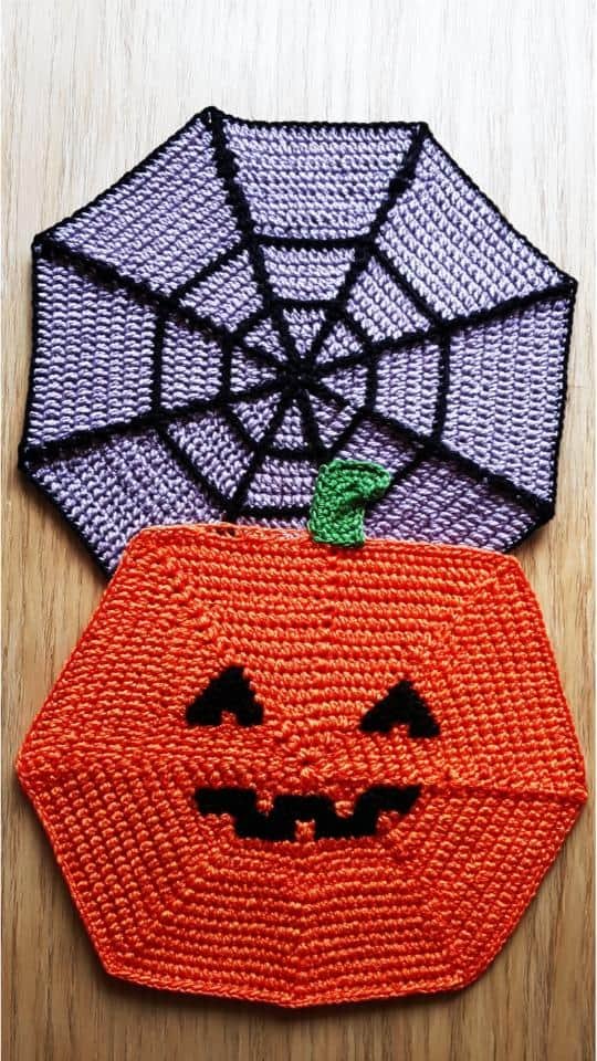 These Halloween table mats make my kitchen feel more festive right away. I crochet spiderwebs in bold colors like orange and purple to mix fun with function.