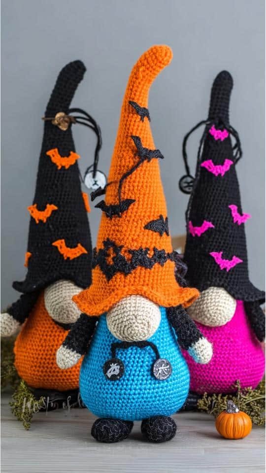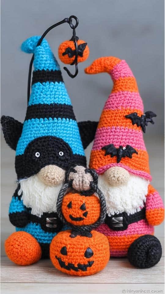 Halloween gnomes always make me smile. Their tall hats, little noses, and bright clothes feel so playful.