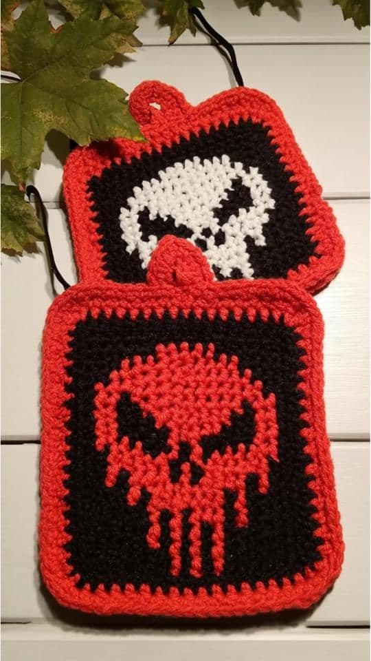 The skull pot holders instantly caught my eye. The bold colors and sharp contrast look amazing in my kitchen, especially during Halloween.
