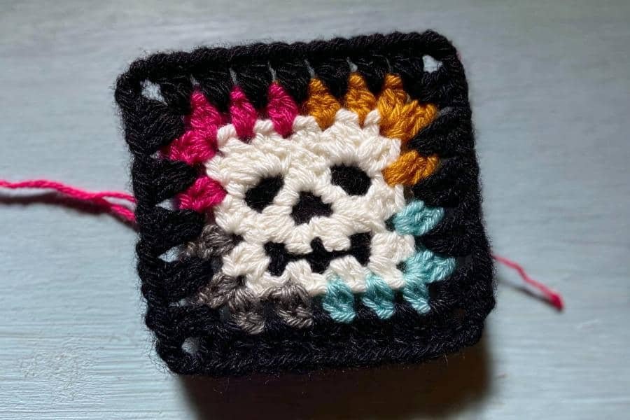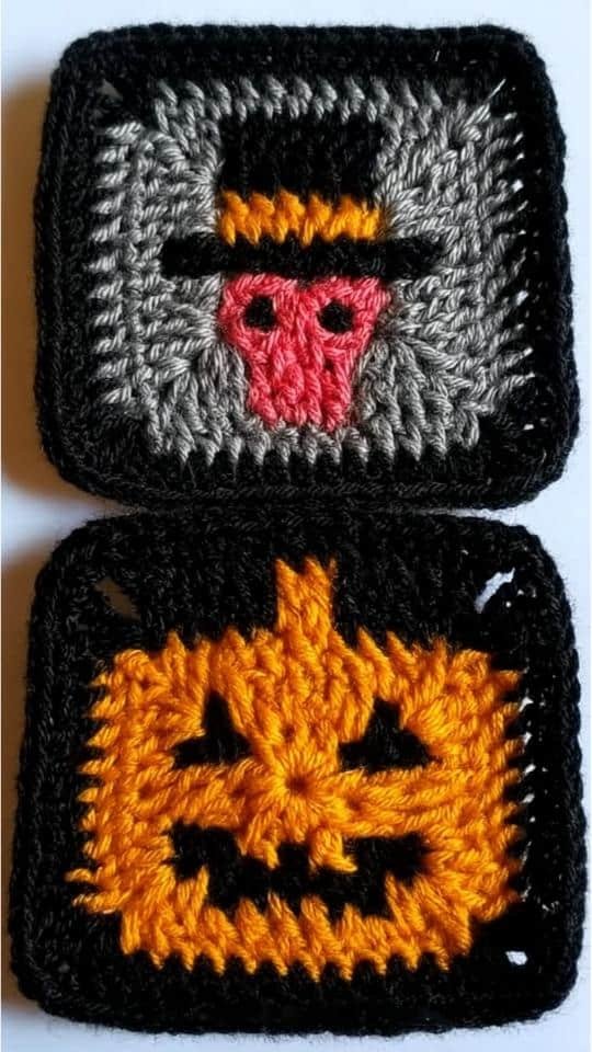 Using granny squares is a great way to add Halloween spirit to crochet projects. Pumpkins and skulls made from these small blocks add a playful touch to anything I create.