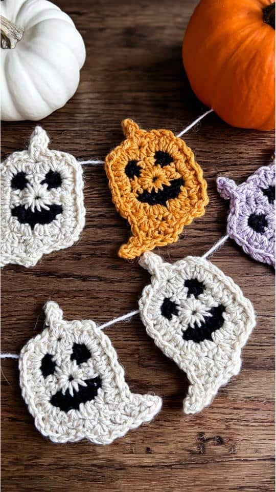 Looking for a Halloween decoration that stands out? I crochet garlands with colorful pumpkins and skulls that always become the centerpiece of my display.