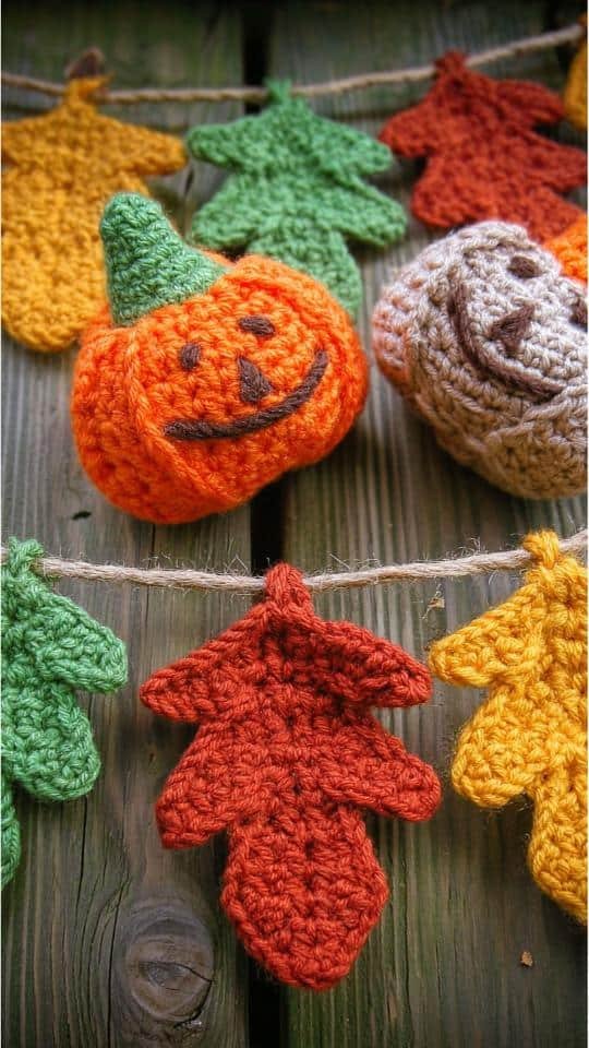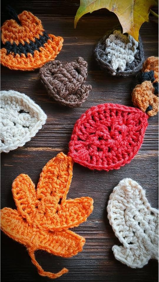 I like making crochet leaves because they add color and life to my Halloween projects.