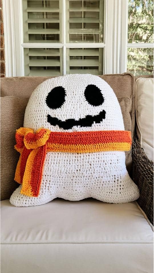 Next to it, the ghost pillow wrapped in a cozy striped scarf feels like a warm friend for fall. Making these pillows made me happy, and they are an easy way to make any room feel brighter.