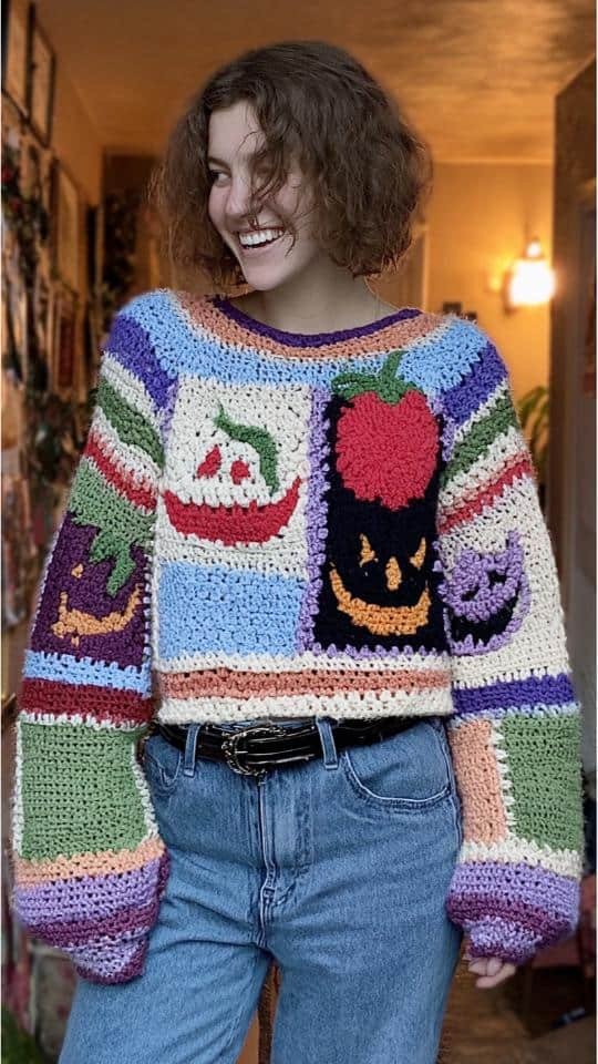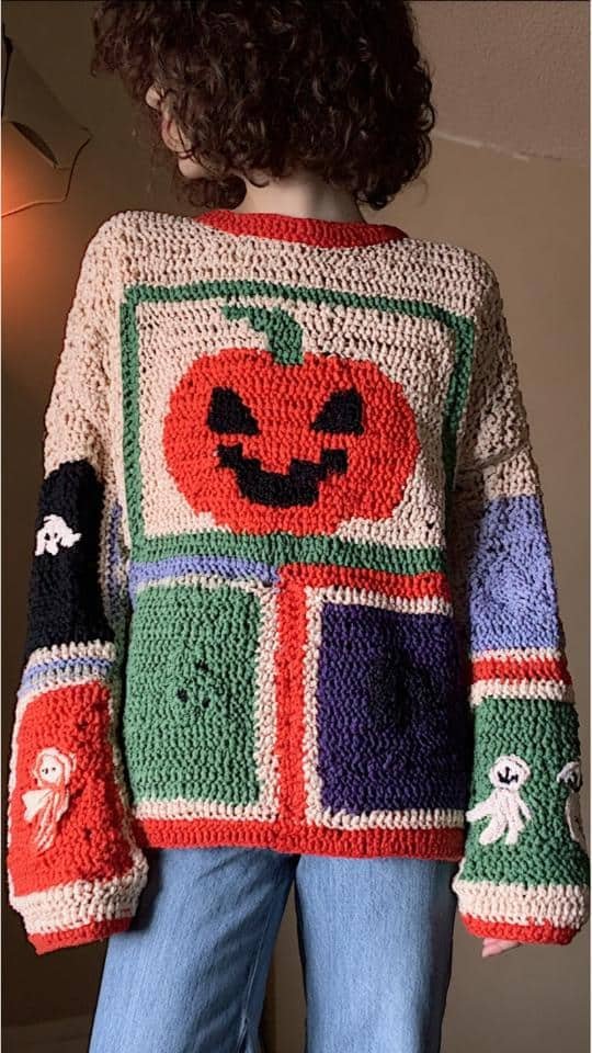 I love how crocheted sweaters bring Halloween motifs to life in a cozy way. The bright pumpkins and playful ghosts on these sweaters make me smile whenever I wear them around October.