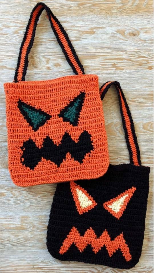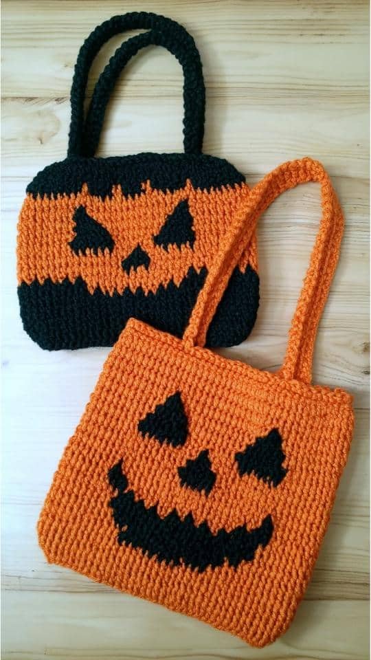 Carrying a crochet bag with a bold pumpkin face always catches my eye. Bright orange paired with deep black makes the design stand out and brings a festive feel to any outfit.