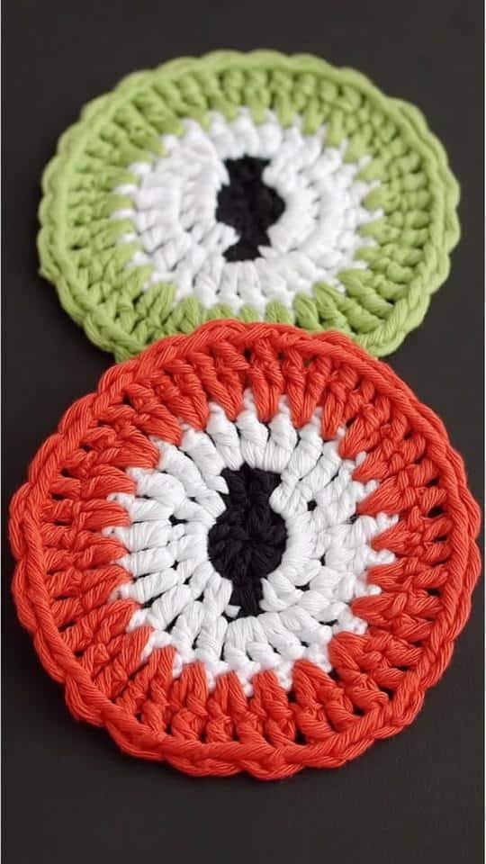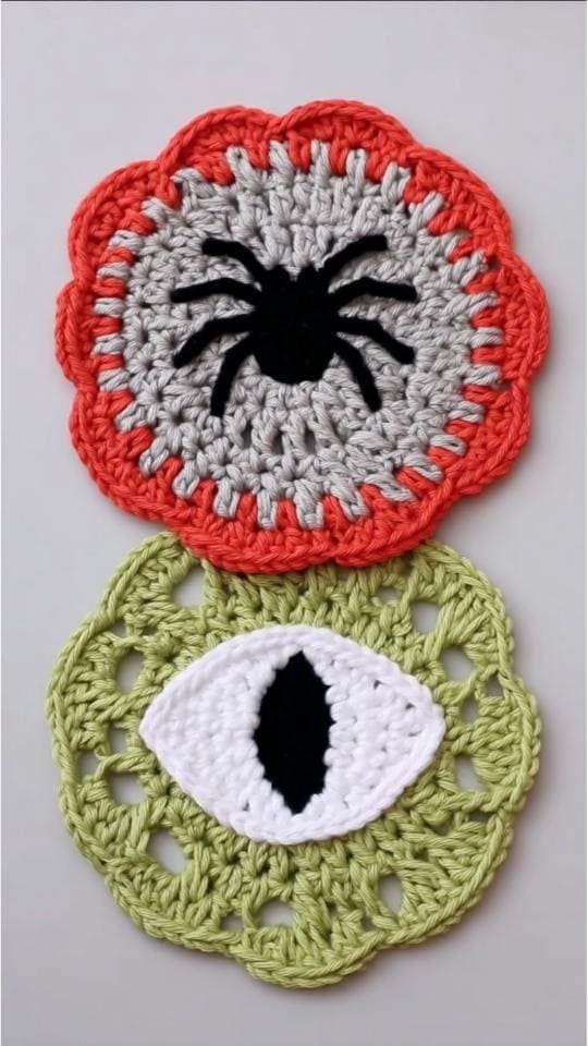 Looking for an easy way to add Halloween cheer to your home? Crochet coasters with bright colors catch the eye and brighten up any table.