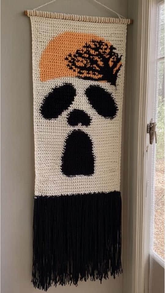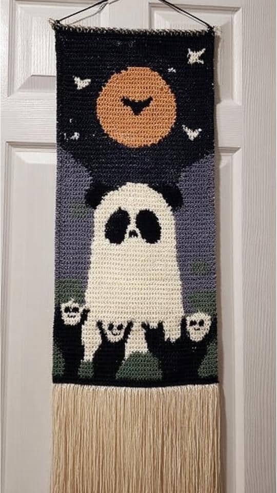 Crochet tapestries change how a room feels at Halloween. The bright colors and strong designs catch your eye and add a handmade touch to my space.