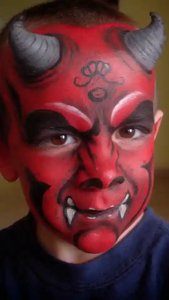 Devil with red skin halloween face painting 2The horns bring it all together, but the paint does most of the work. It’s one of my easiest looks when I want to look bold and strong without doing too much.