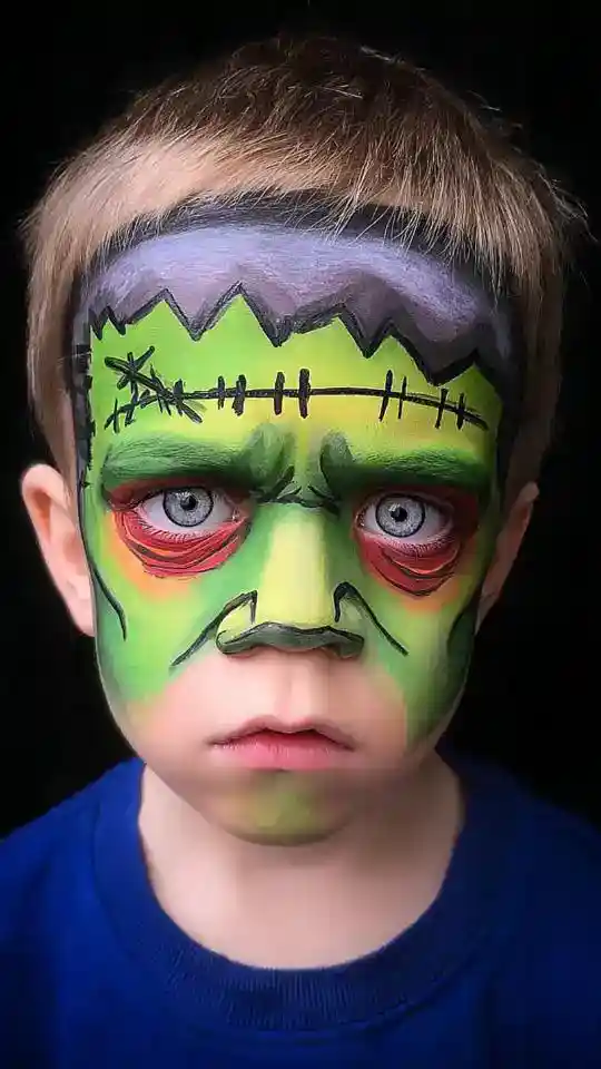 For a classic Halloween look, Frankenstein face paint offers a bold and fun style for all ages.