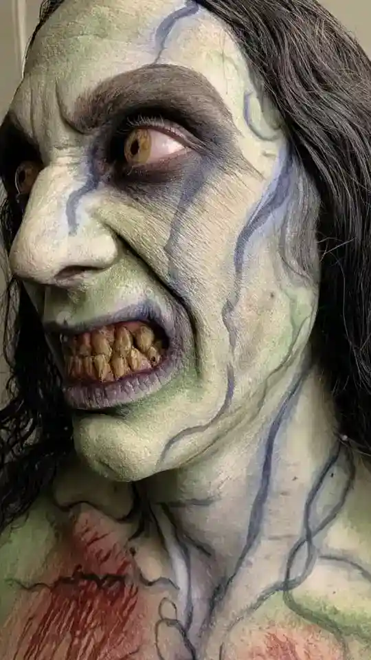 Isn’t it fun to step into character with zombie face paint? The mix of dark shadows and messy teeth gives my face a look that stands out right away.