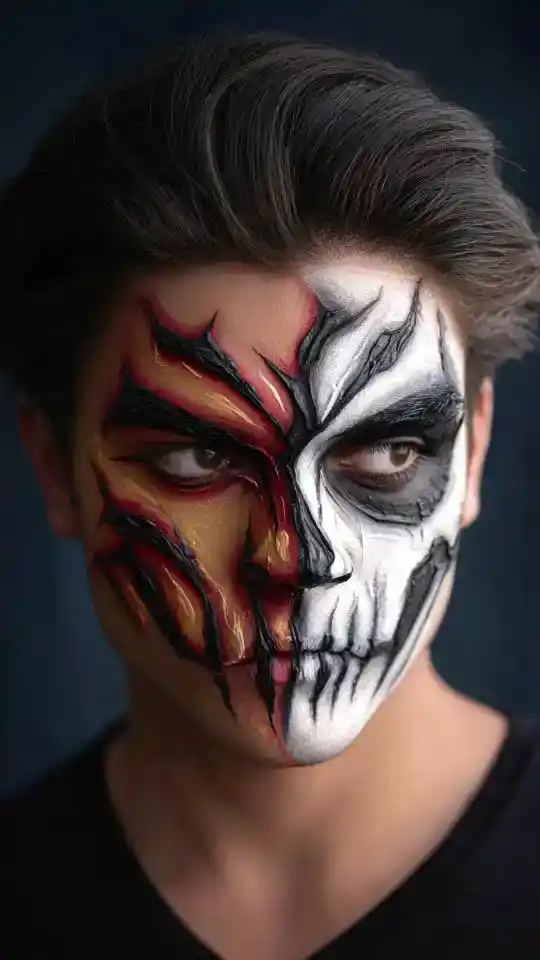 I always feel powerful when I use witch face paint with dark eyeshadow and sharp black lines. The bold contrasts give me a fierce look that makes me feel ready for Halloween night.