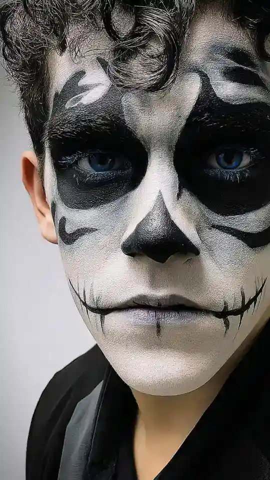 Looking for a bold and striking Halloween face paint idea? These skull designs catch my eye every time with their sharp contrasts and clean lines.