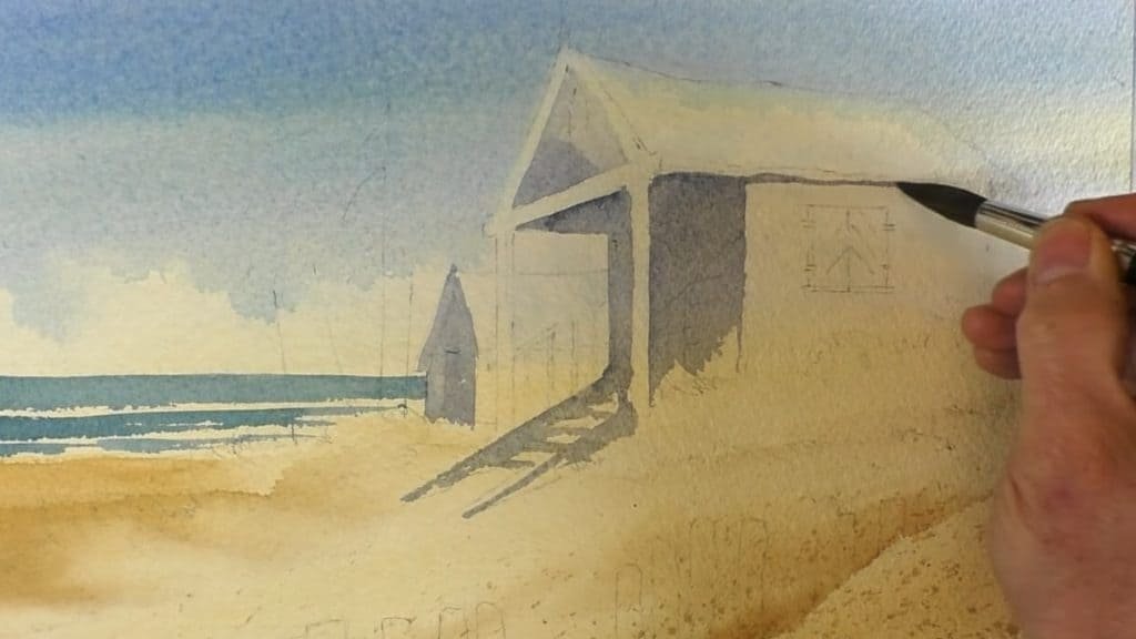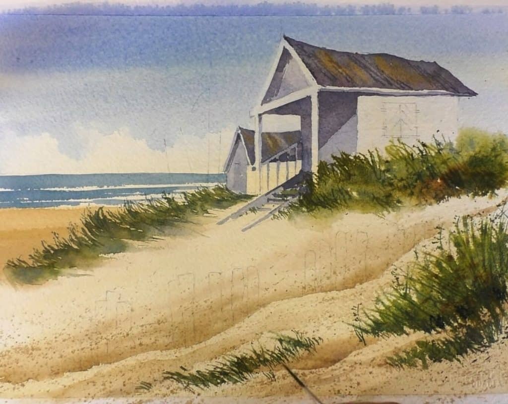 The beach huts add charm to the scene. Paul suggests working carefully here.