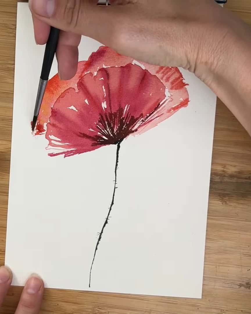 This step-by-step approach shows how a vibrant poppy can be built through simple techniques, layered colors, and expressive brushwork.