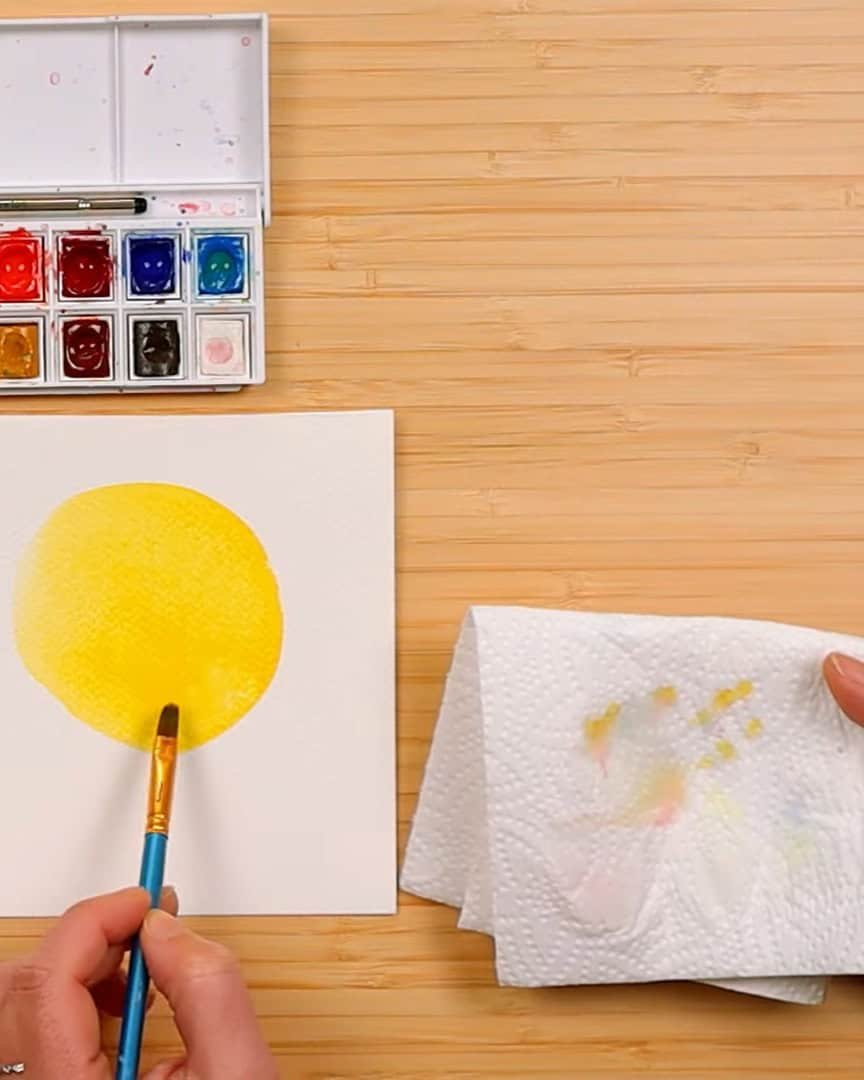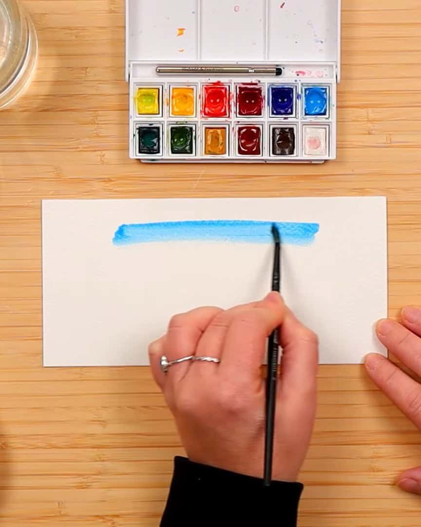 • Avoid puddles on the paper. If the artist sees any water pooling, the artist dries the brush before painting.