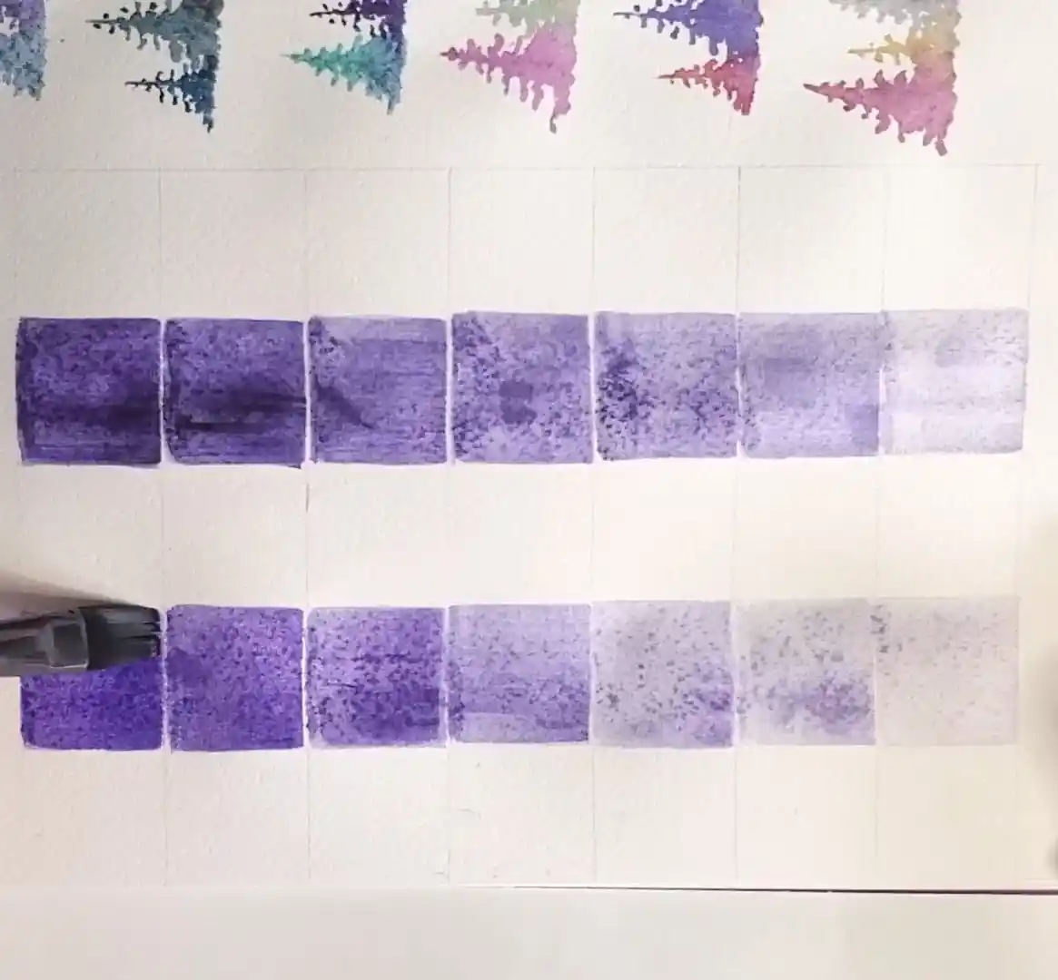 A very diluted violet—matching the value in box 1 of the scale—is prepared.