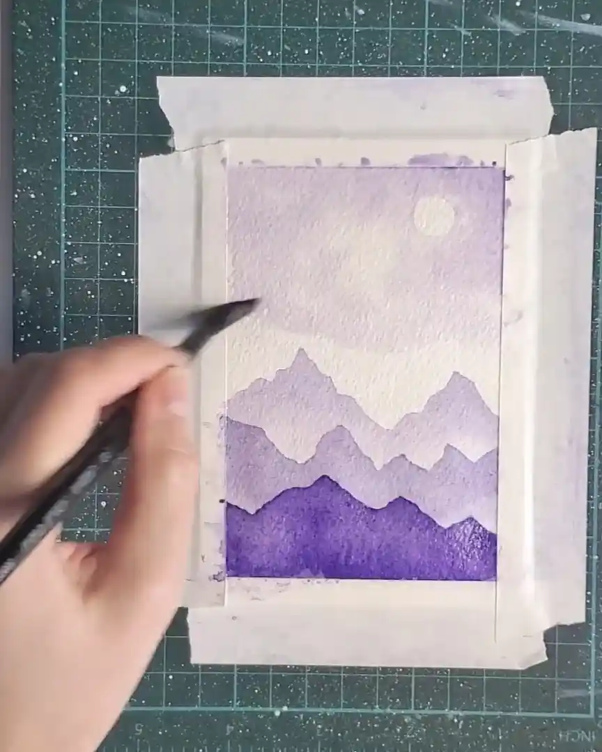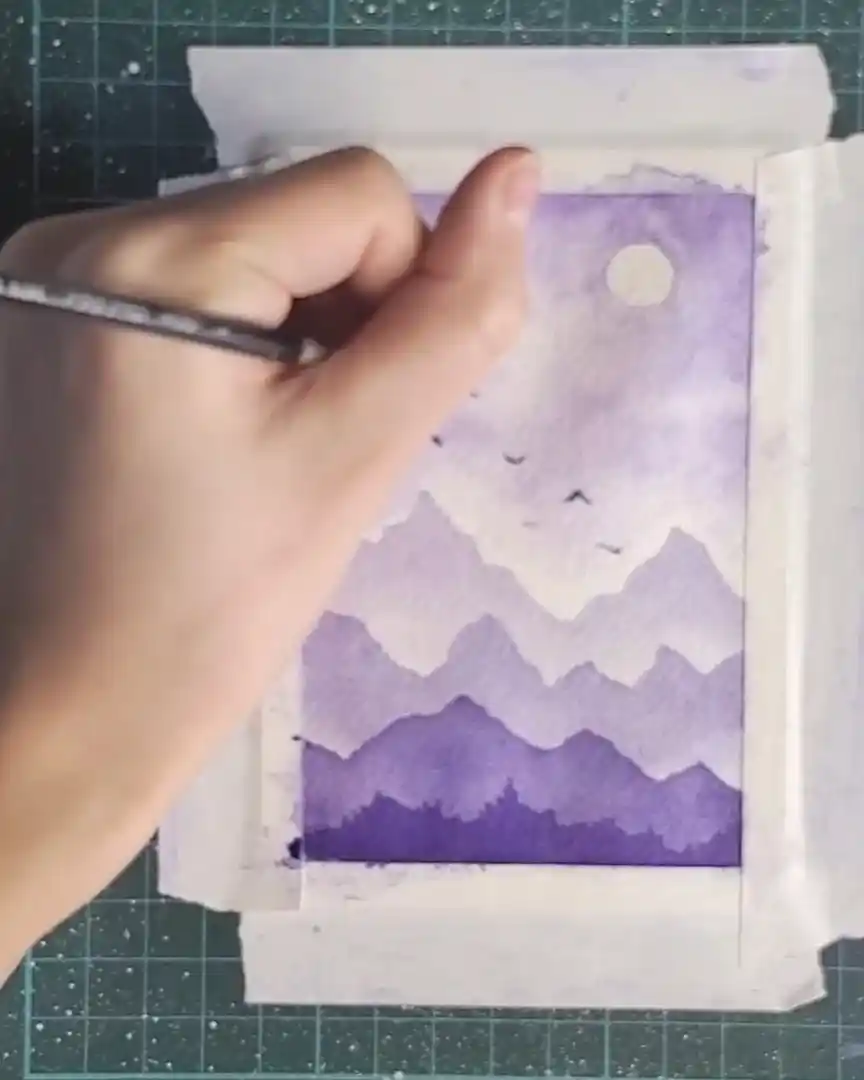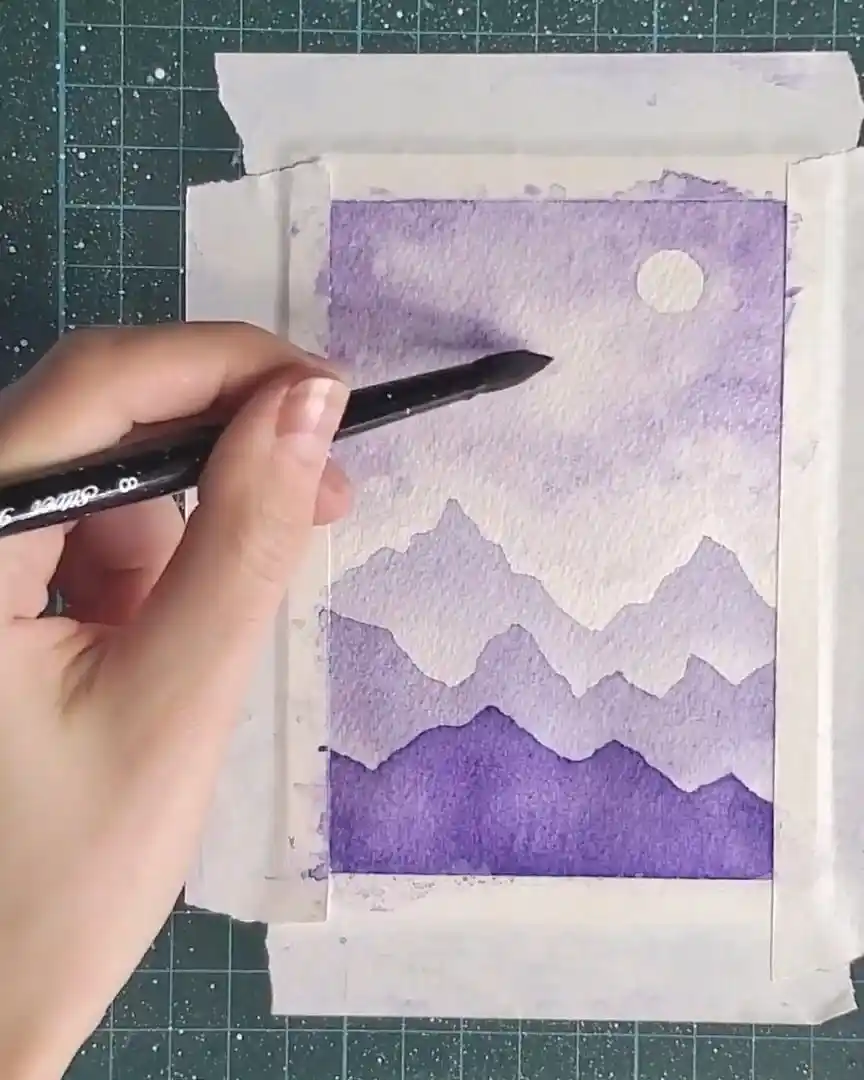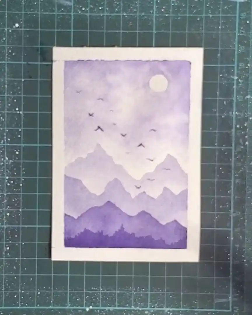 Creating a monochromatic watercolor landscape offers a simple yet rewarding way to explore tonal values. Layering light-to-dark violets and adding small, thoughtful details brings depth and life to the composition.