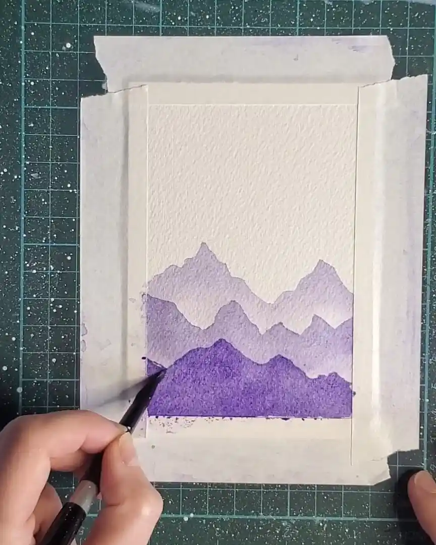 More violet pigment is added to the mixing well, creating the deepest shade yet—ideal for this final mountain layer.