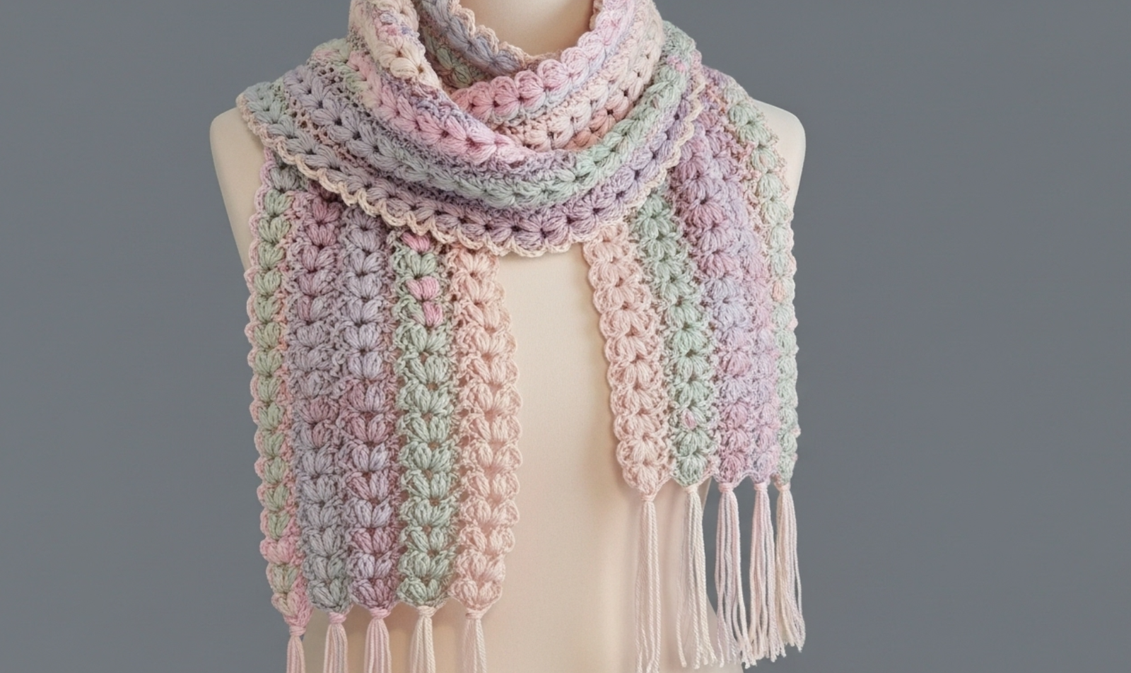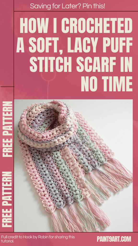 Your Puff Stitch Mile-A-Minute Scarf is complete! With its elegant texture, lacy look, and rhythmic stitch pattern, it’s sure to become a favorite in your handmade wardrobe—or the perfect gift. Make it in any color combo for a truly one-of-a-kind accessory. Add fringe, tassels, or leave it clean—it’s yours to style!