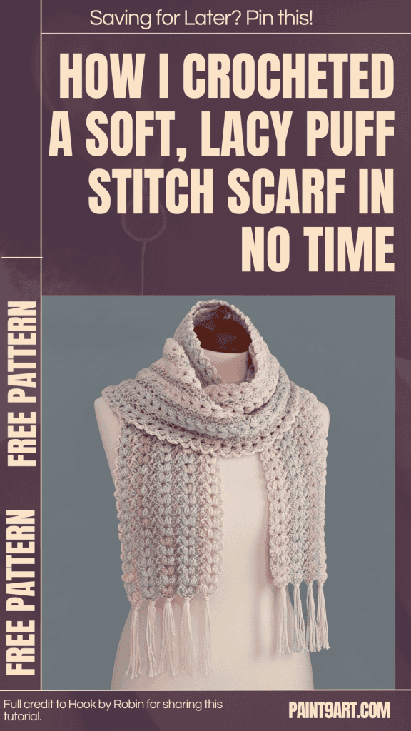 The Puff Stitch Mile-A-Minute Scarf is made in easy strips that work up quickly using puff stitches and basic chains. Despite its delicate, lace-like appearance, this scarf is beginner-friendly and perfect for mindful, meditative crochet.