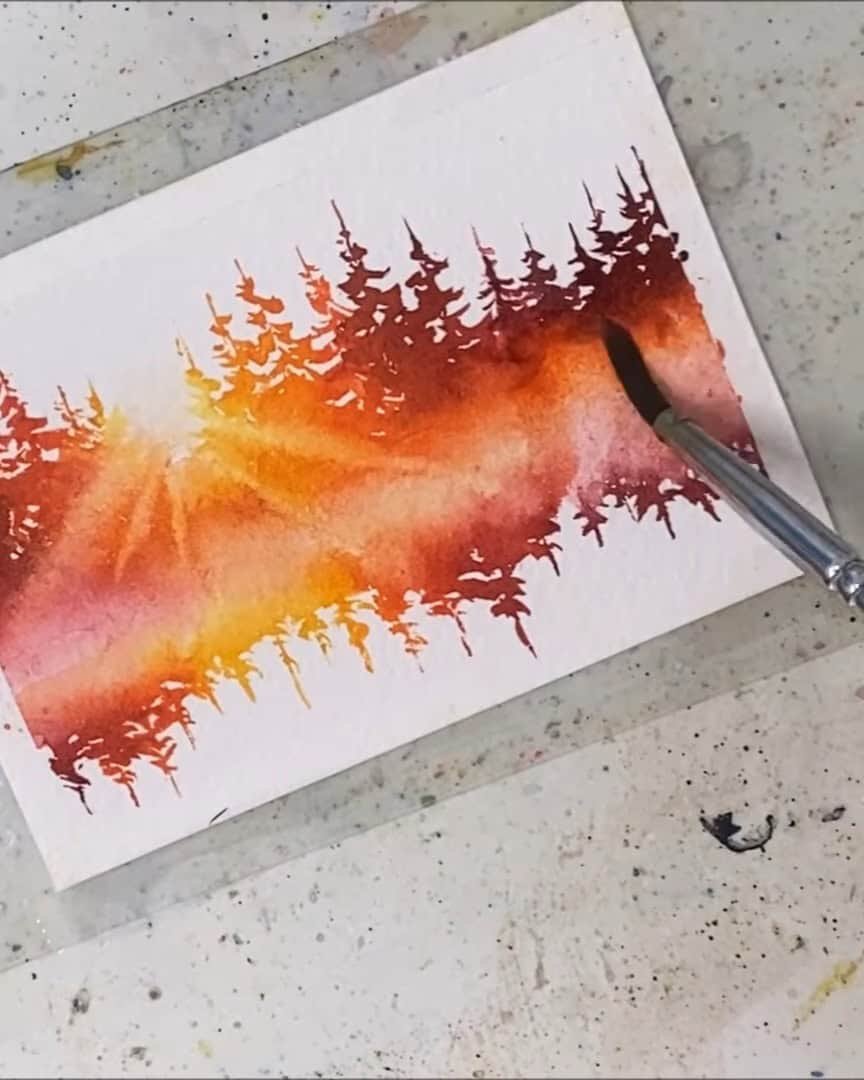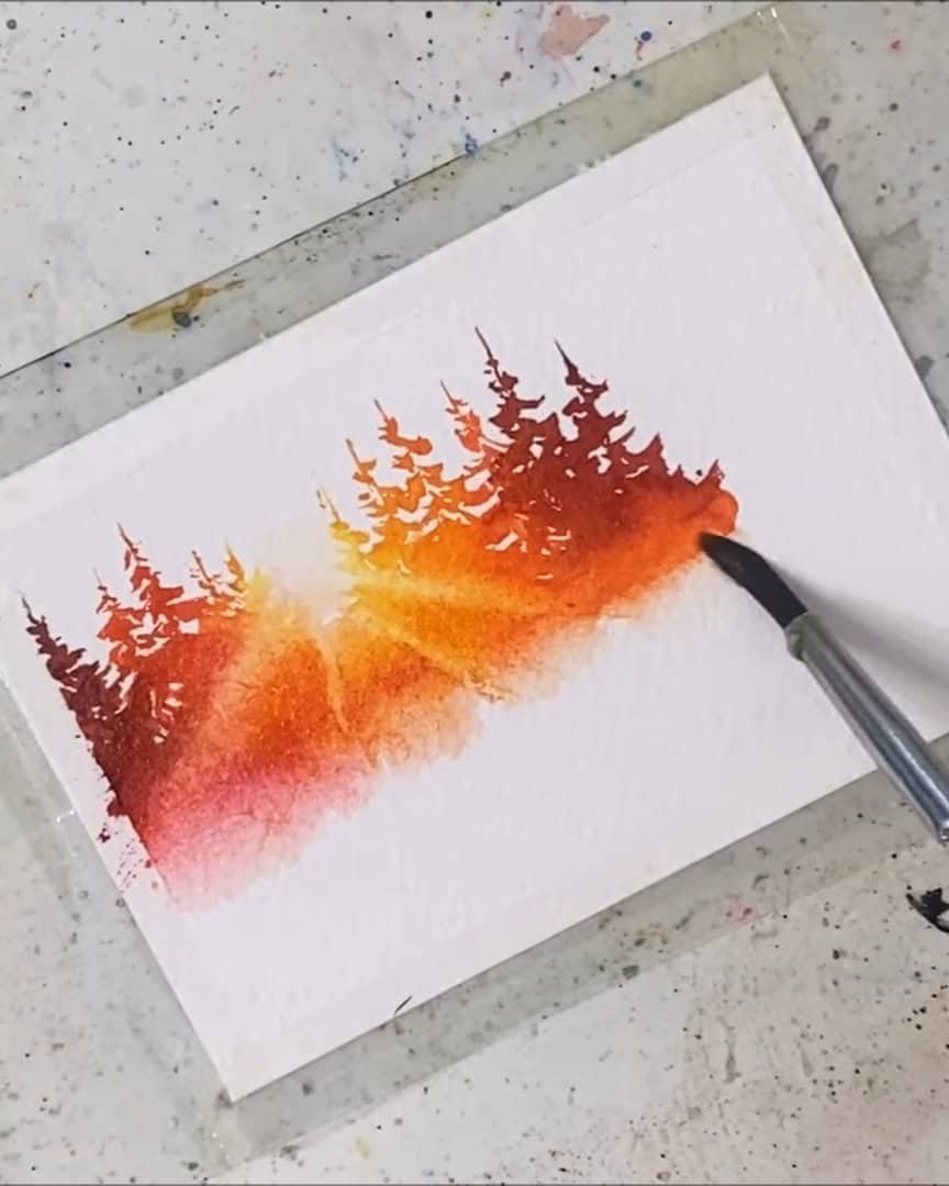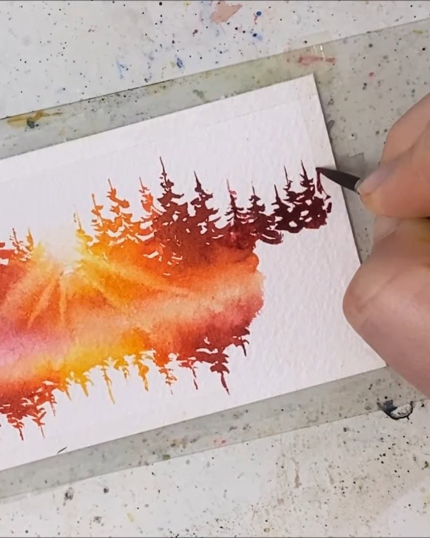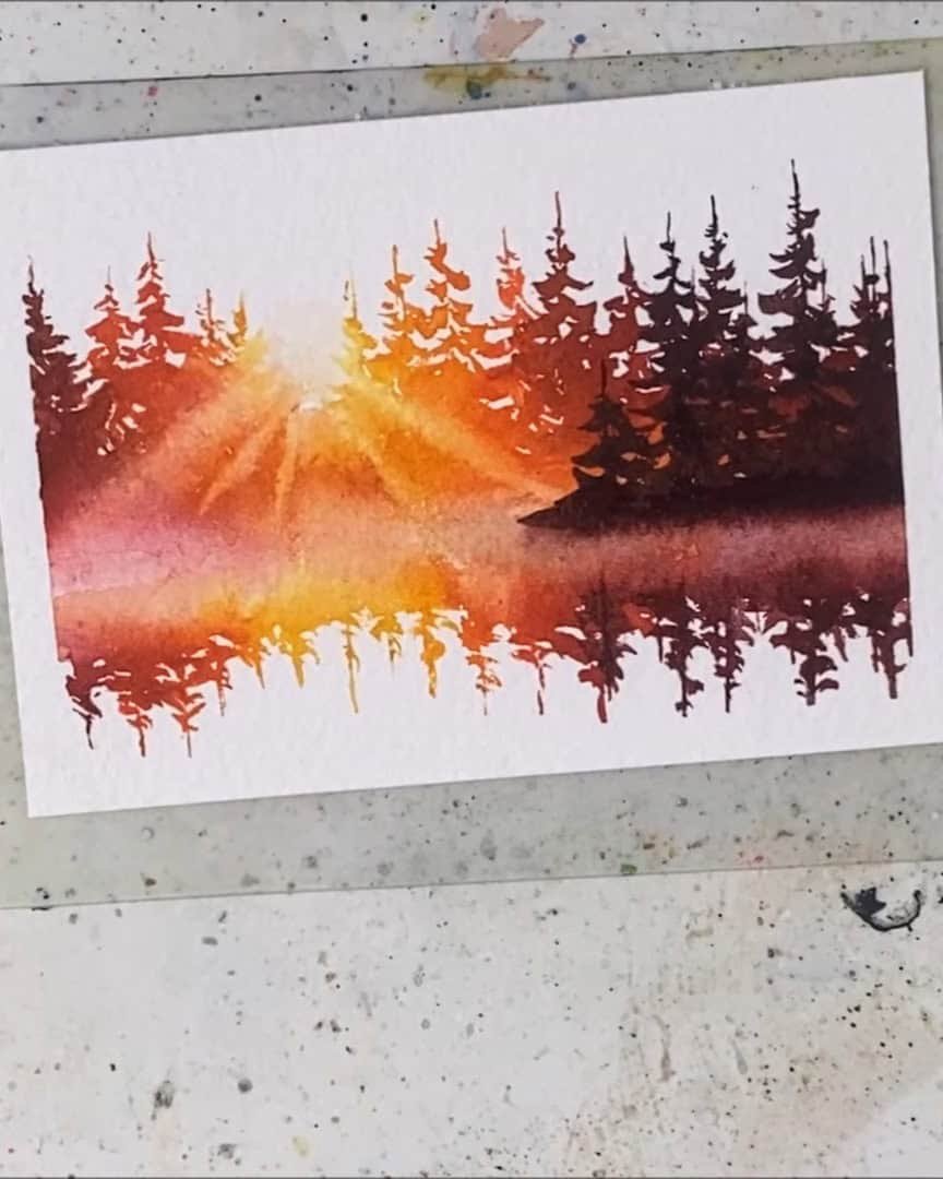 That’s exactly what Julia Lis Art creates in this tranquil watercolor landscape.