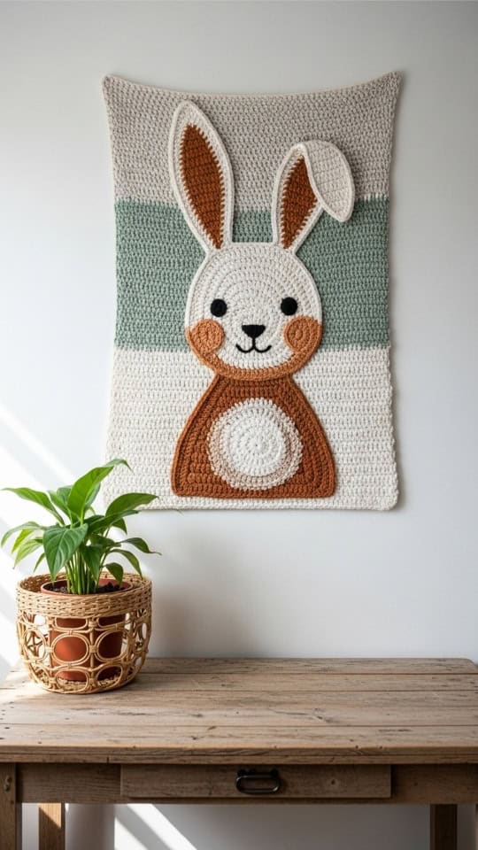 A bunny design can bring joy to any space. Soft yarn stitches create its cute ears and happy face. I love using pastel colors for a gentle look, but bold tones work too. It’s small yet full of charm.