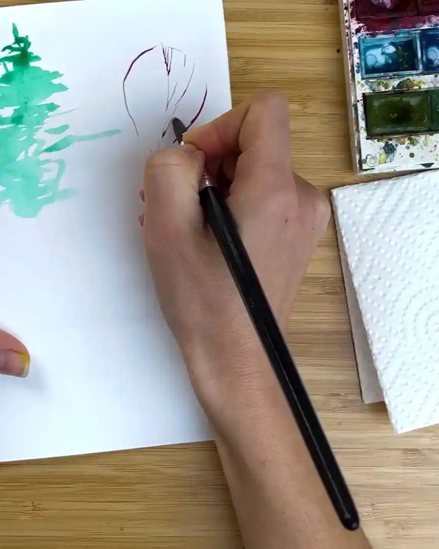 - To get loose strokes, the artist holds the brush near the end. This way, natural and playful lines appear.