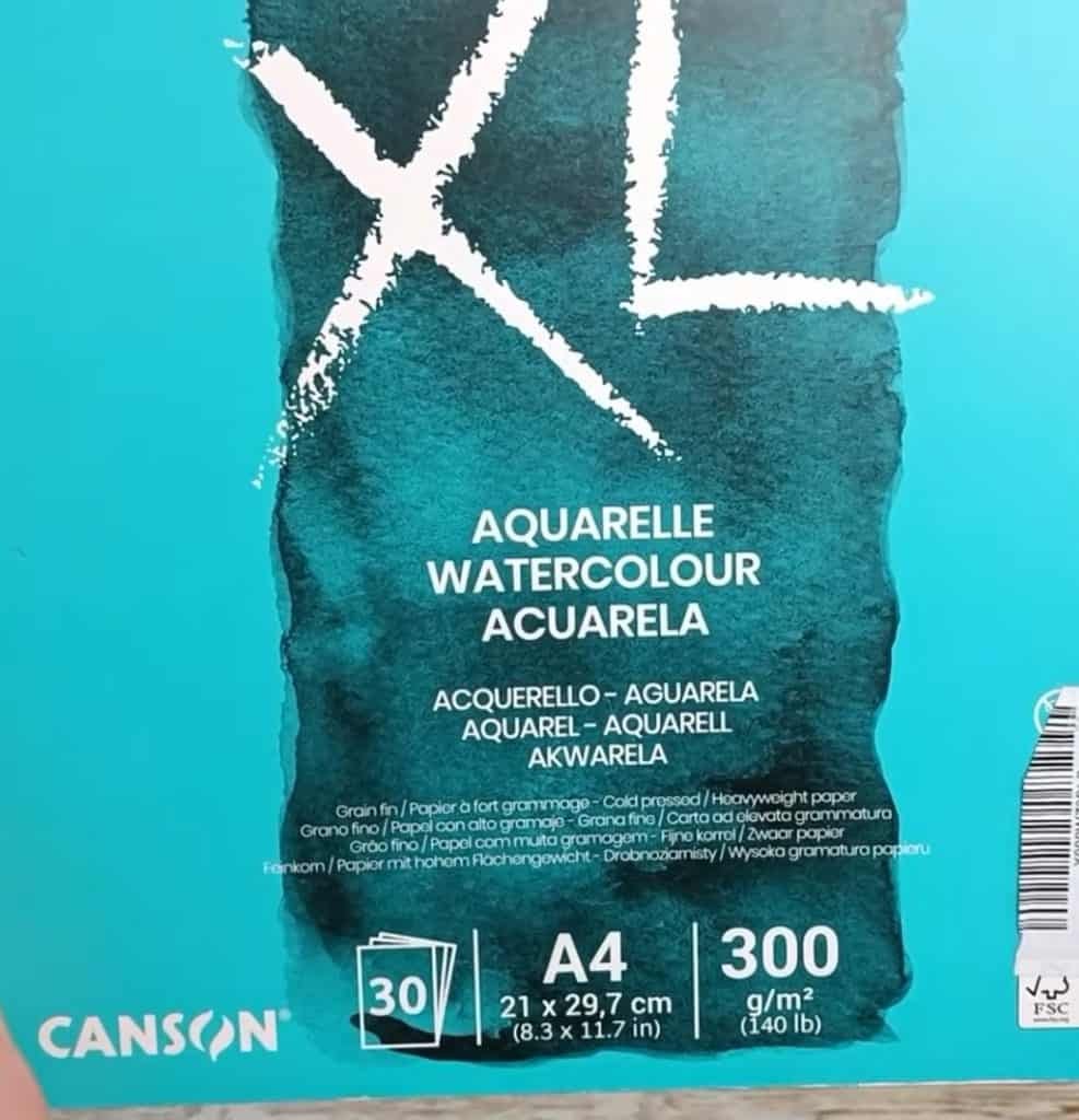 You start with watercolor paper. Asia Marquet recommends Canson XL watercolor paper because it is reliable for beginners and gives a smooth surface.