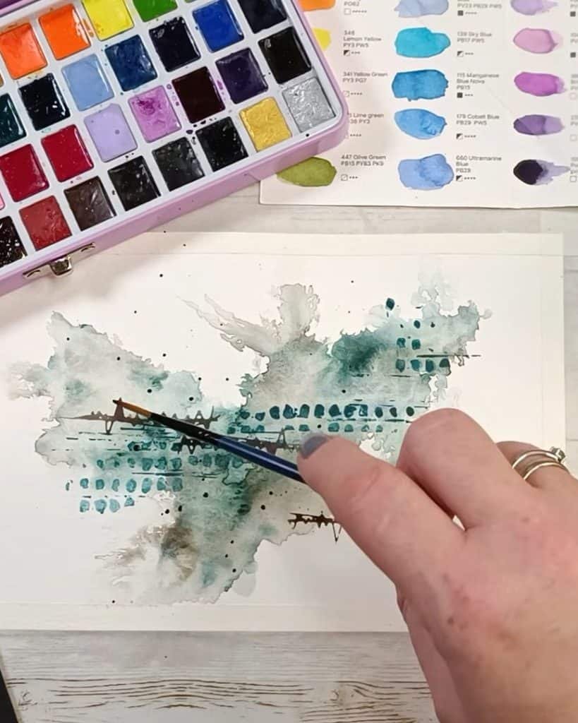 Step 7: Adding Texture and Marks with Watercolor Stamping