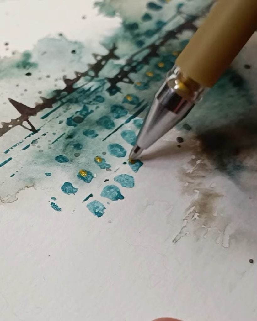 For highlights, she adds subtle gold accents. Metallic touches reflect light and give the painting a unique charm.