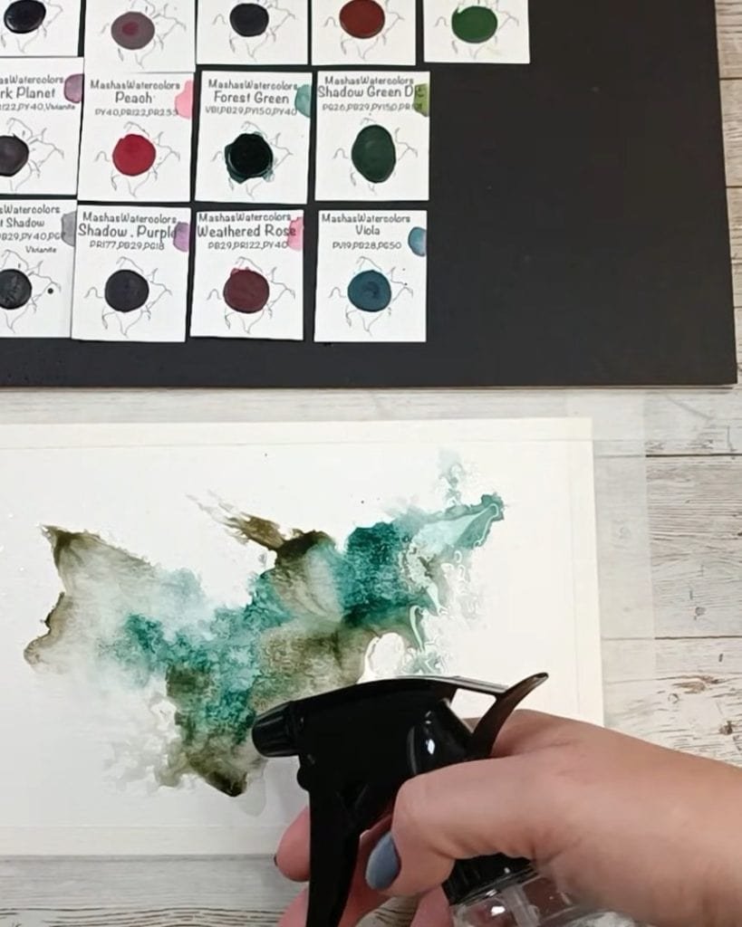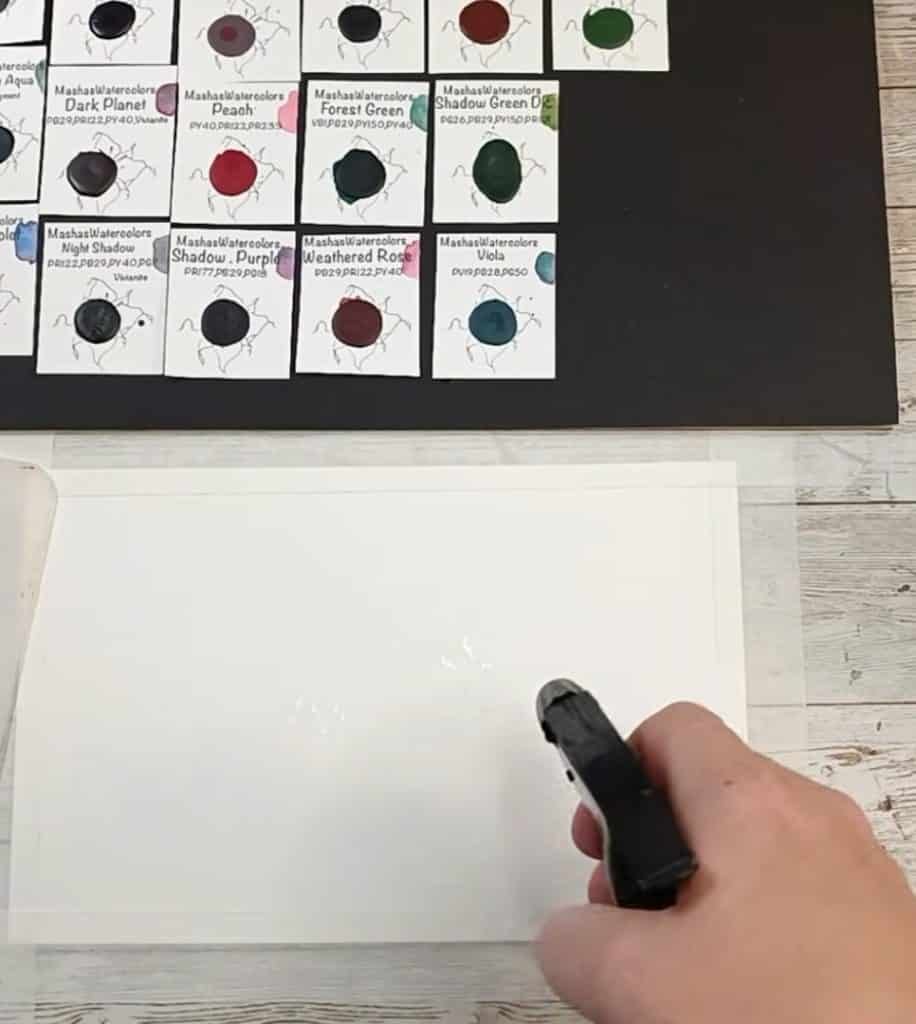 - First, spray the paper lightly with water. This helps the colors move smoothly and blend naturally.