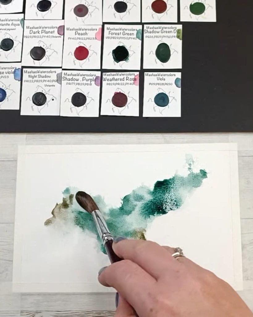 Now that your paper is ready, it’s time to choose your paints. Asia Marquet suggests focusing on quality watercolors that give character to your design.