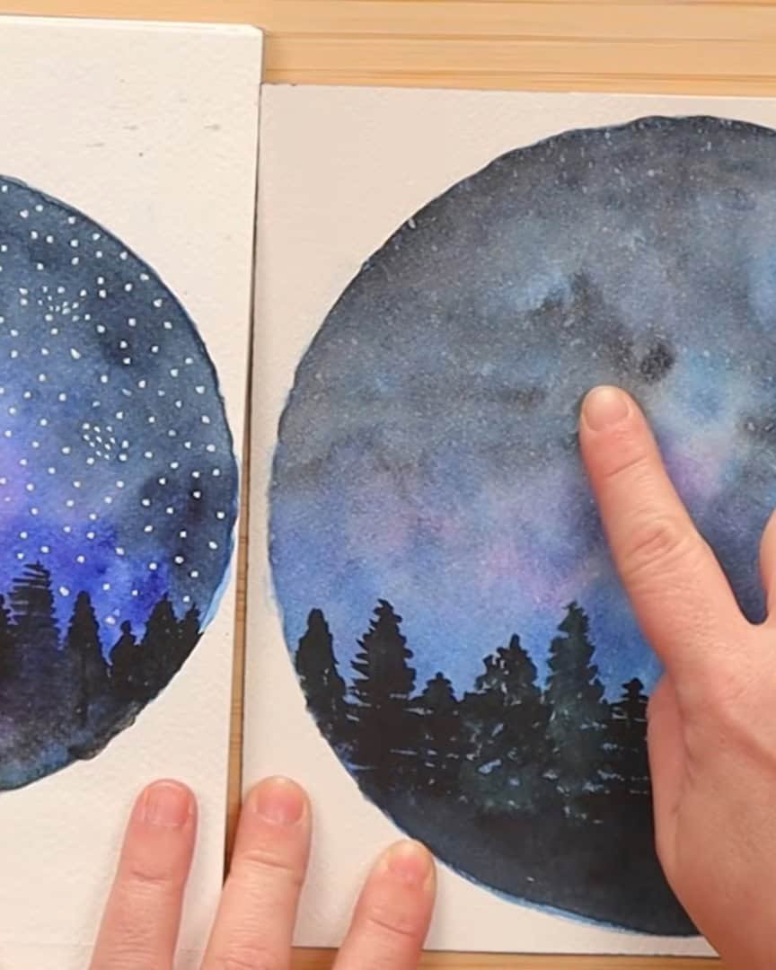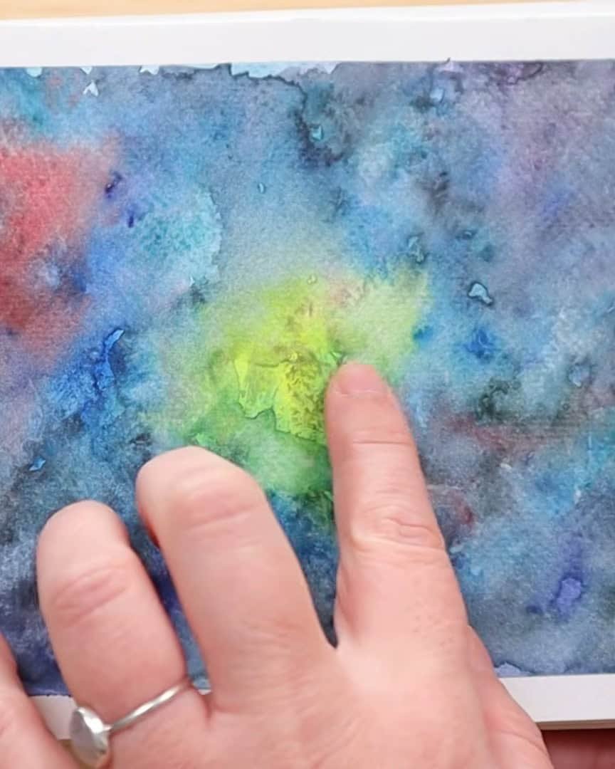 White watercolor paint is fun when playing with galaxies or abstract scenes. The artist painted a galaxy and wanted soft spots of brightness—different values, different textures.