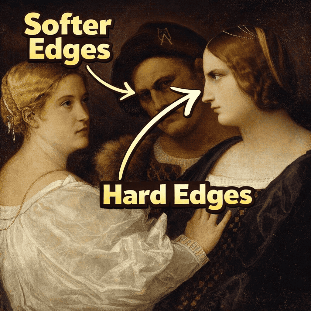 A hard edge appears where contrasting values meet sharply. These clear transitions signal importance, and the eye instinctively moves toward them.