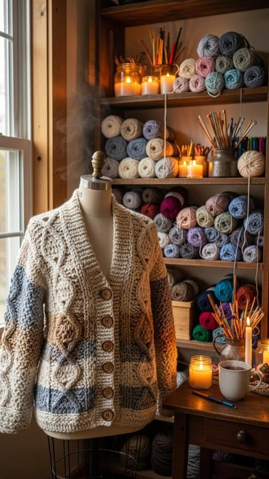 I love making cozy cardigans with thick yarn. The oversized fit feels like wearing a warm cloud! I use Lion Brand Wool Ease Thick & Quick Yarn because it works up fast and stays soft.