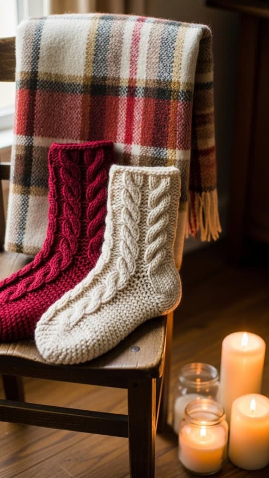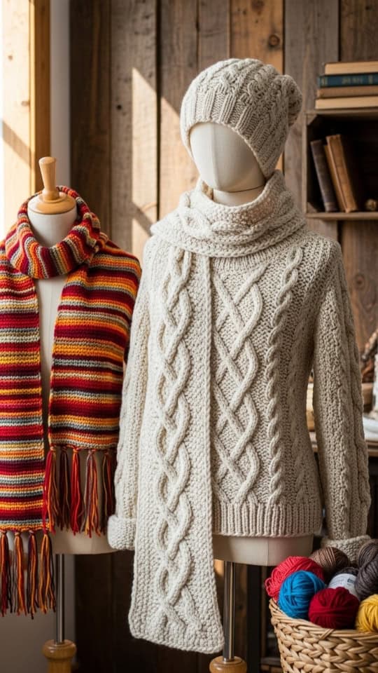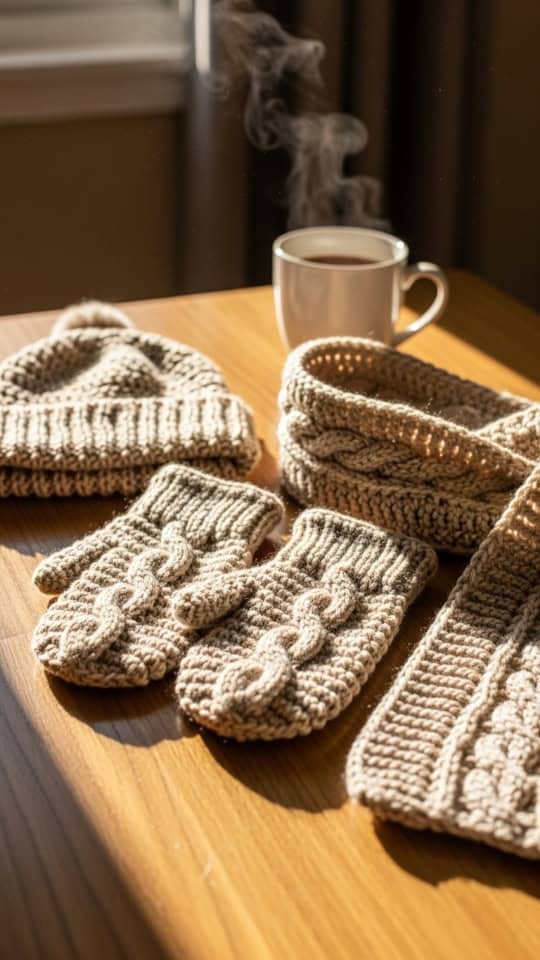 Using soft beige or cream yarns can bring out their elegant charm. The intricate cable designs add texture that feels perfect for colder days.