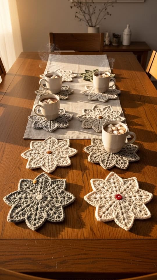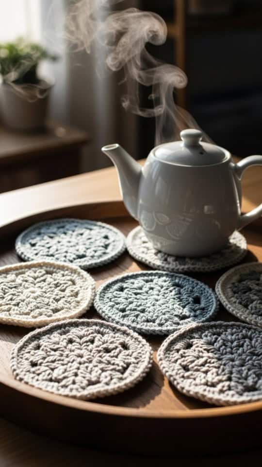 I love making round crochet coasters for winter. They’re simple, useful, and bring a cozy touch to any table. Using leftover cotton yarn works great since it absorbs heat and moisture well.